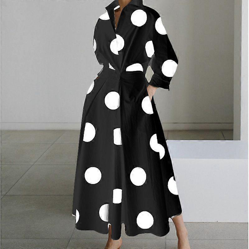 Autumn Fashion Long Sleeve V-Neck Print Dress Women's Polka Dot Temperament Long Skirt
