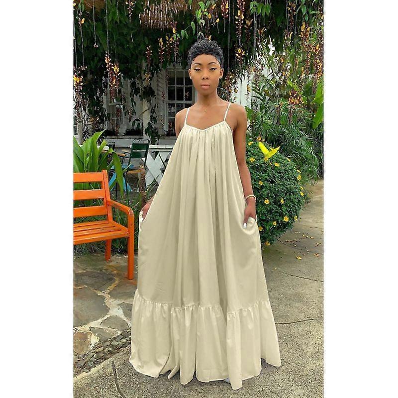 ! Zl's Best-Selling Strapless Sleeveless Solid Color Long Swing Dress