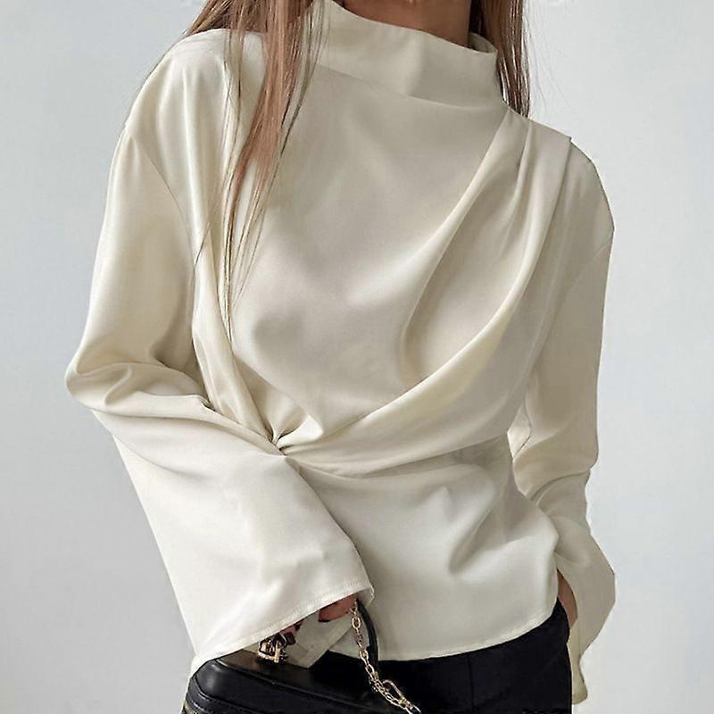 Fashion French Chiffon High-End Cleft Women's Shirt Spring/Summer Apricot Color Slimming Long-Sleeved Top
