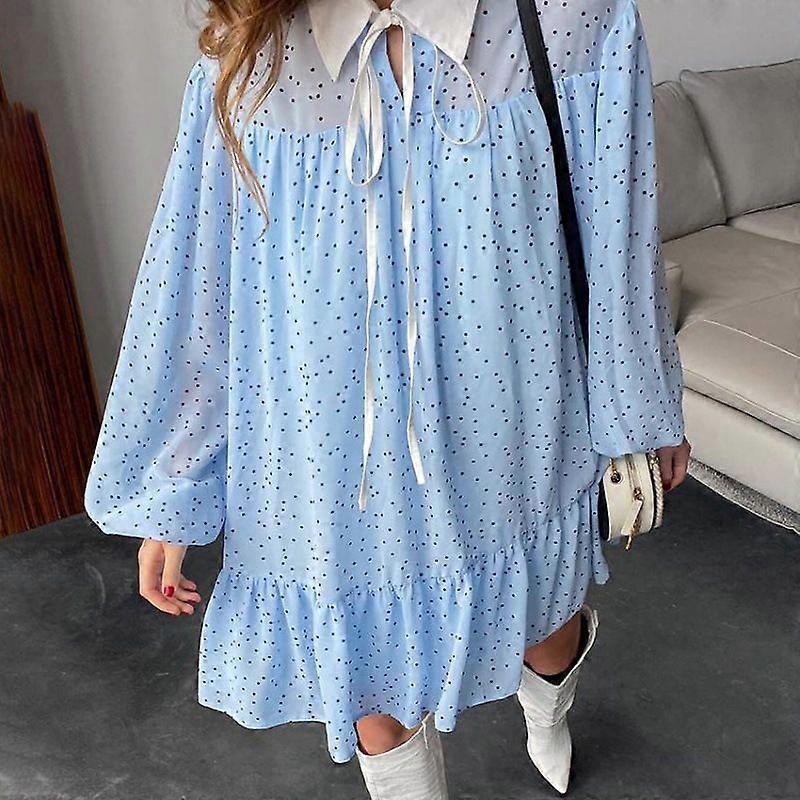 Autumn Loose Lapels Lace-Up Contrasting Dresses With A Sense Of Design And Temperament, Fashionable Casual Commuting