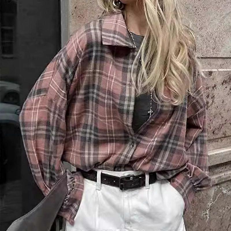 Autumn And Winter Pink Plaid Long-Sleeved Shirt Fashion Niche Versatile Commuter Plaid Jacket Women's Style