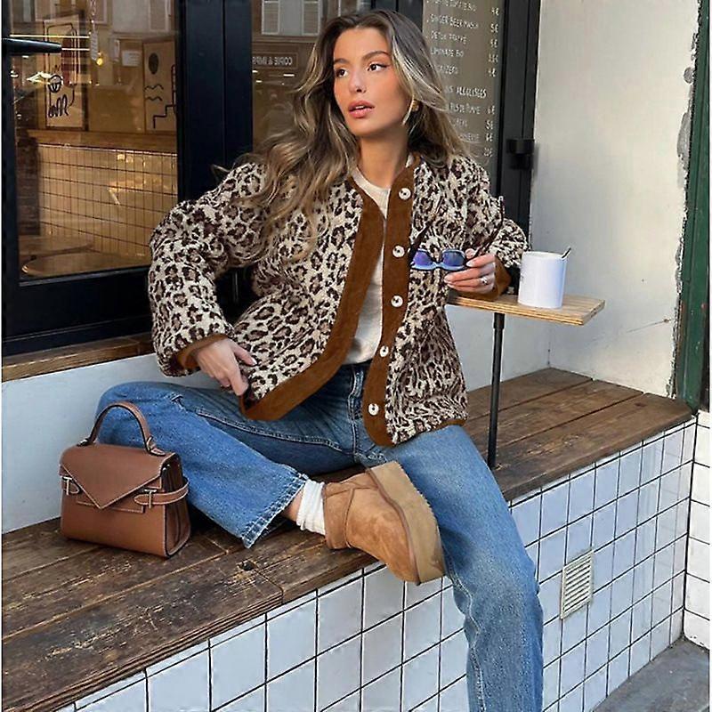 High-End Leopard-Print Cashmere Jacket For Autumn/Winter, A Stylish Long-Sleeved Top For Women