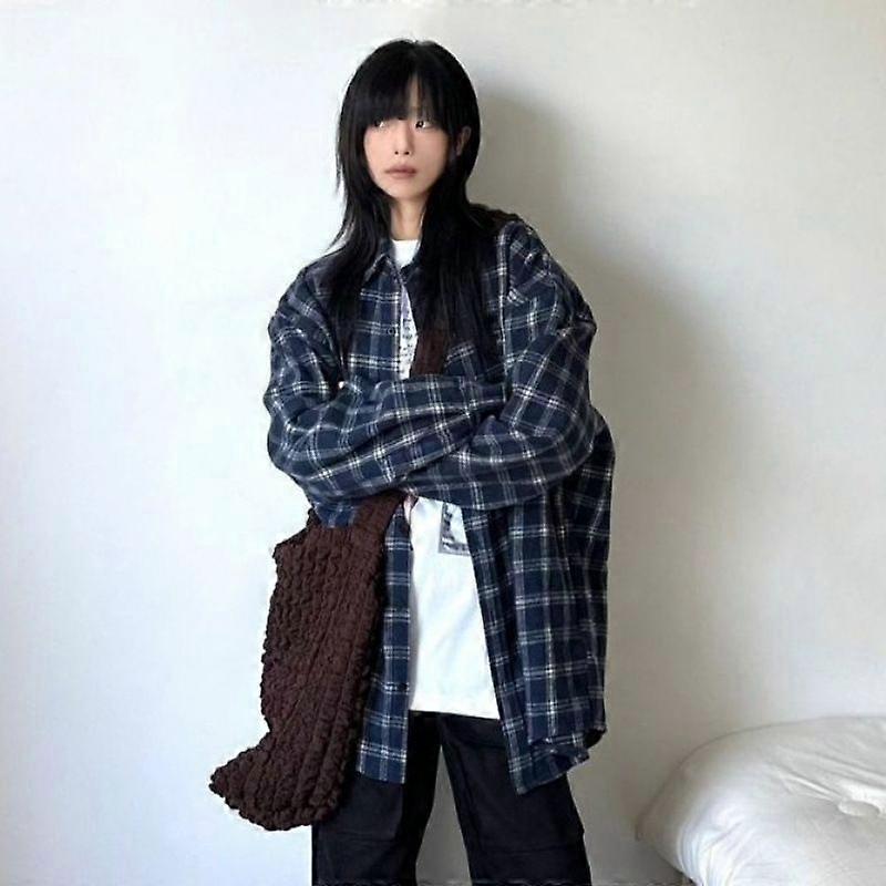 American Retro Checkered Shirt For Women, Autumn Loose-Fitting Coat With Design Appeal, Niche Couple's Long-Sleeved Top