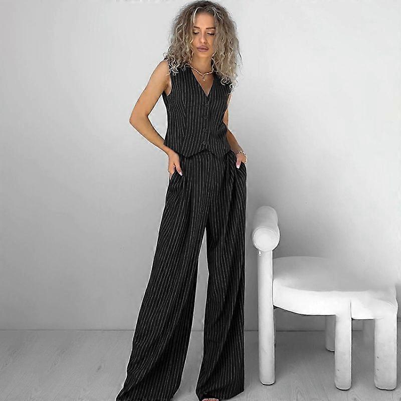 Vintage V-Neck Striped Suit Two-Piece Set-Stylish And Professional Autumn-Winter Women's Fashion With A New Mature Style