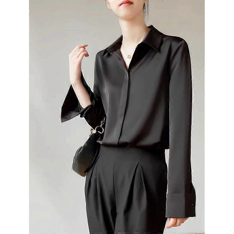 A Simple Style Long-Sleeved White Shirt With Hidden Door Buttons For Women's Spring And Autumn Hong Kong-Style Casual Commuting White-Collar Professio