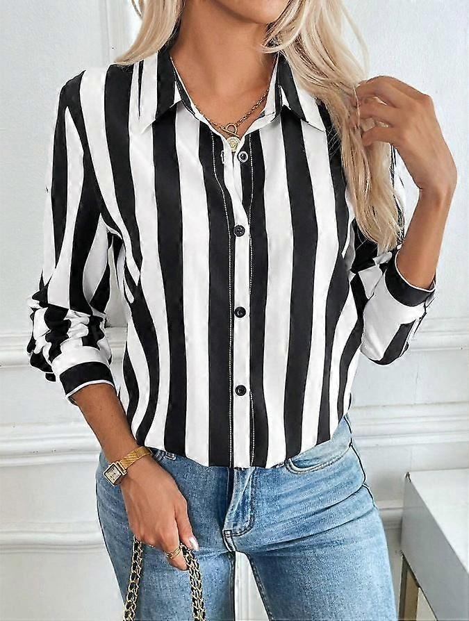Spring/Summer Fashion Collection: Elegant Blue Striped Blouses For Women Versatile And Stylish
