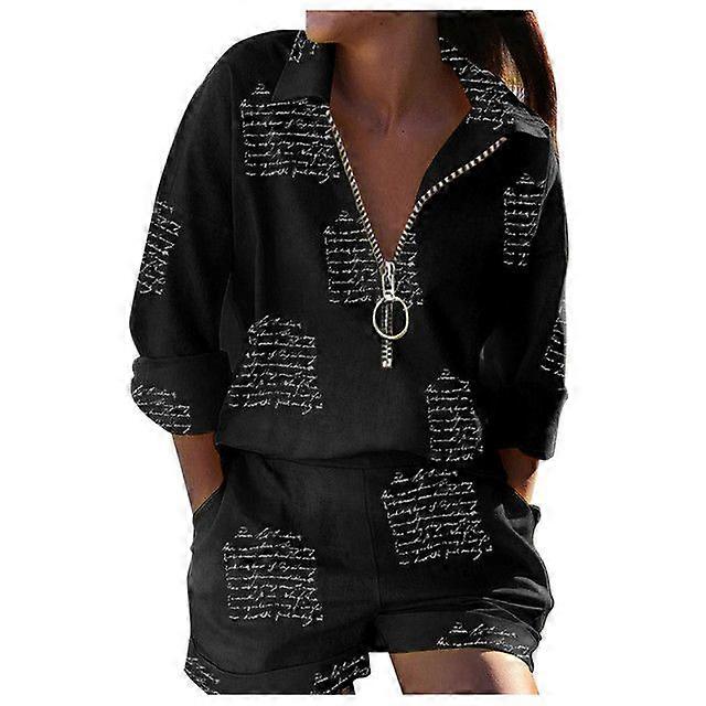 Spring/Summer Women's Clothing: Long-Sleeved Printed Zipper Short Pants Two-Piece Set