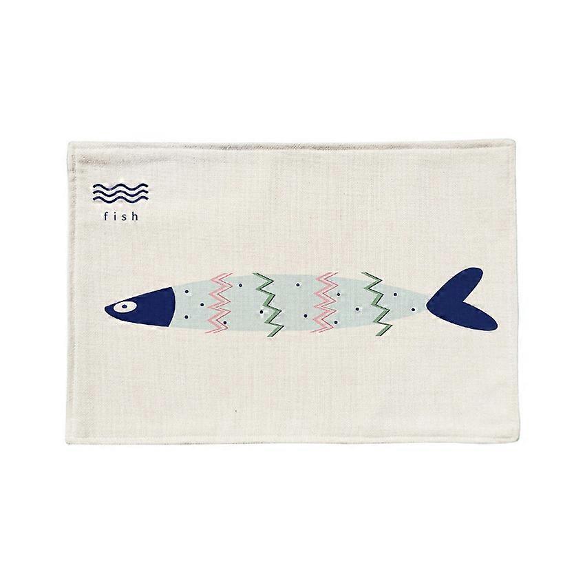 Linen Placemat Table Mat Fish Print Nordic Pads For Kitchen Dining Table Disc Pads Bowl Coasters Home Decor 44x28cm 2/4/6pcs