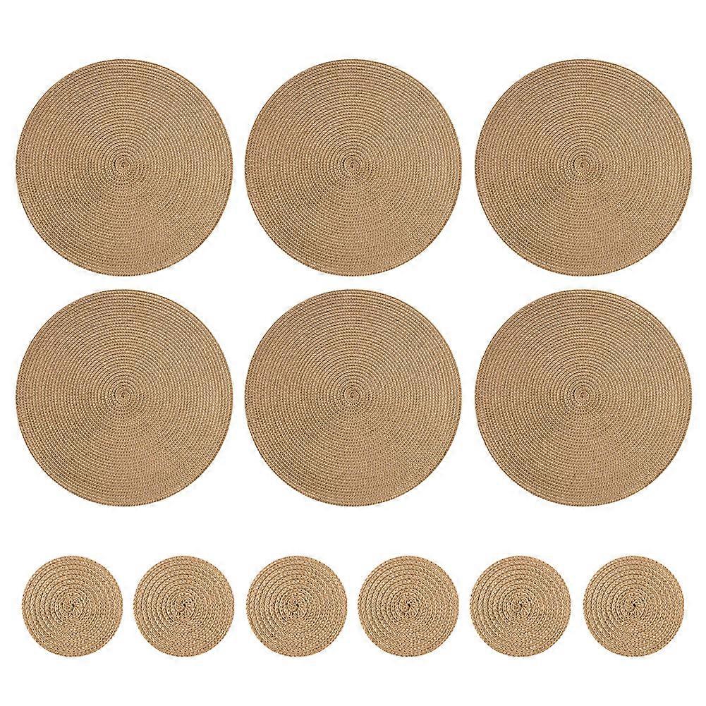 Set of 6 Round Braided Placemats with Coasters Place Mats Non Slip Heat Resistant Table Decor Mats for Home Dining Rome Weeding