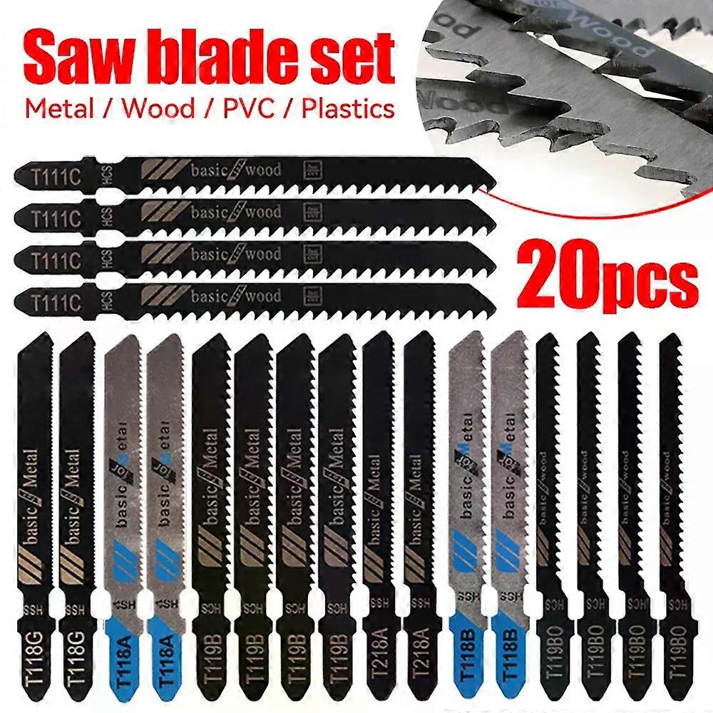 20Pcs Jigsaw Blades T-Shaft HCS Assorted Jigsaw Blades Set Fast Cut Down Saw Blade For Wood Plastic And Metal Cutting Tools