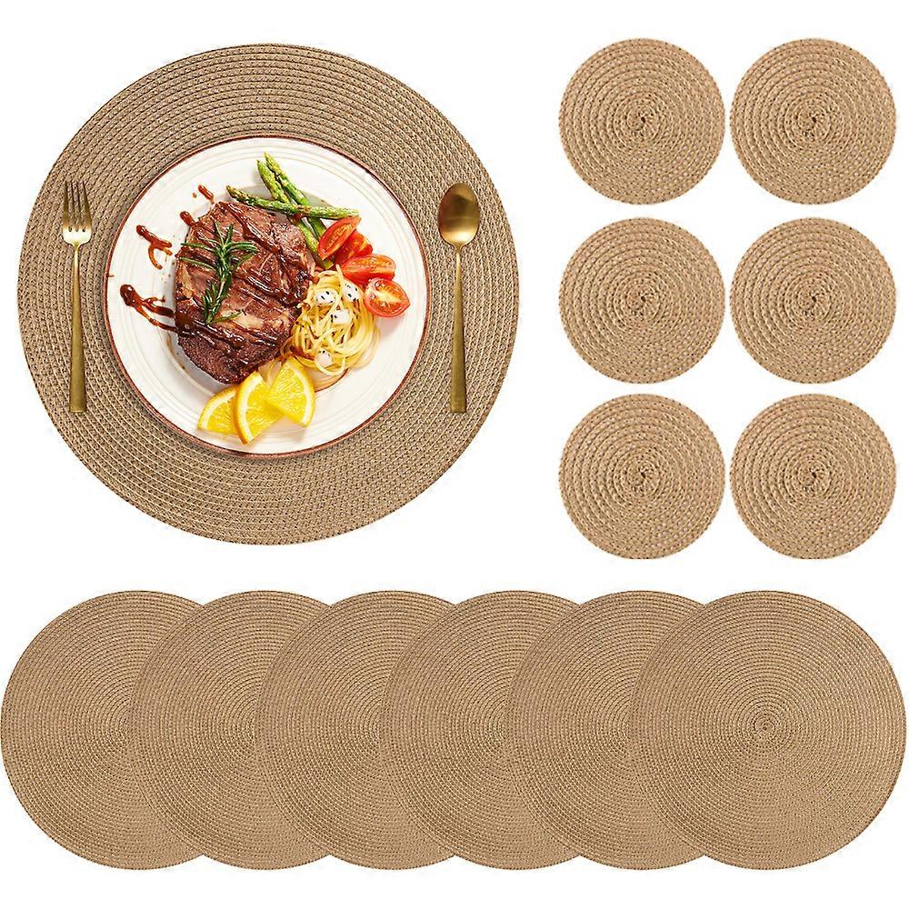 Sets 6 Woven Table Placemats and Coaster 34CM Round Cotton Dinner Table Mats Anti Slip Heat Resistant Easy Clean Place Mats