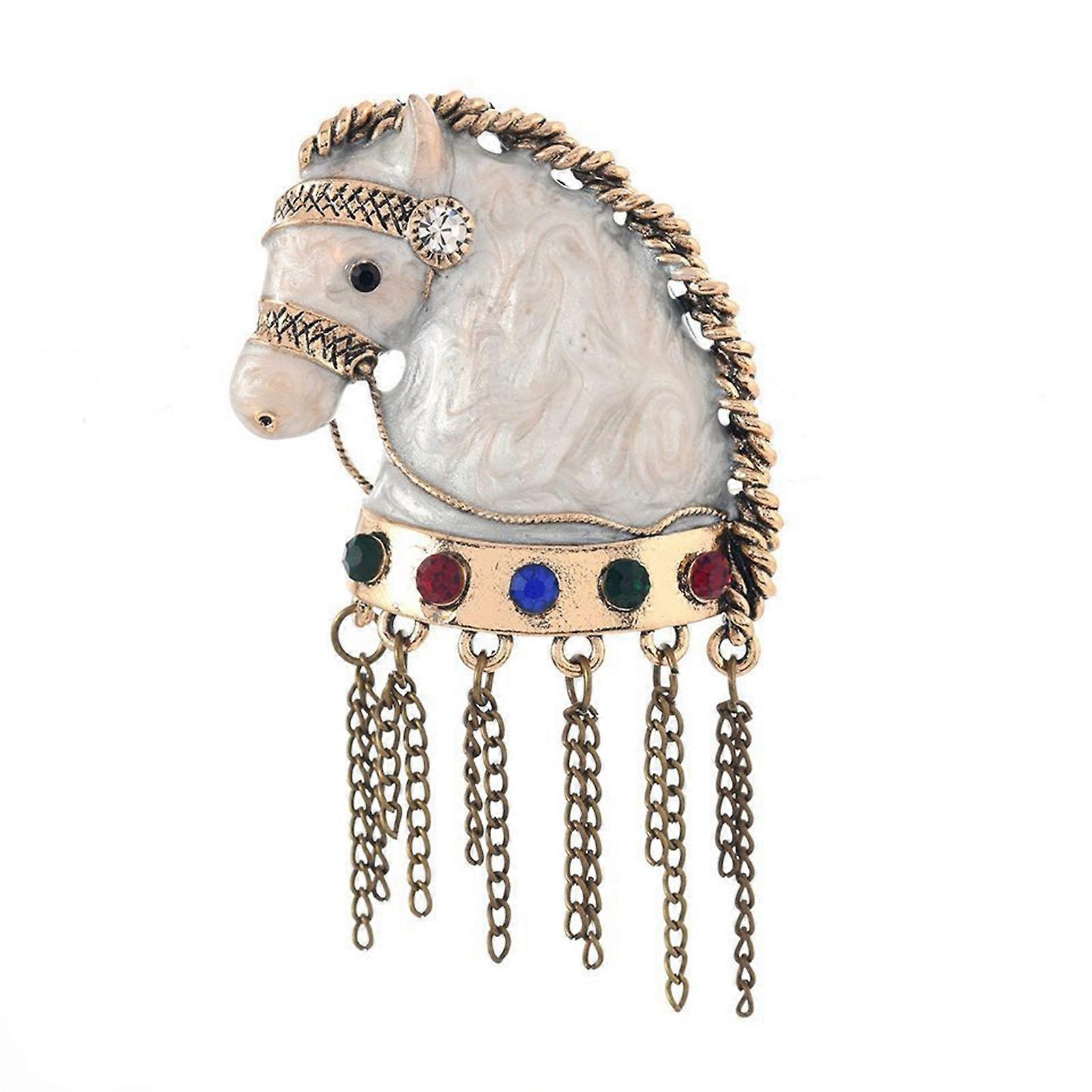 Retro Brooch Tasseled Horse Head Design Men Women Pin Clothes Hats Bags Collar Badge