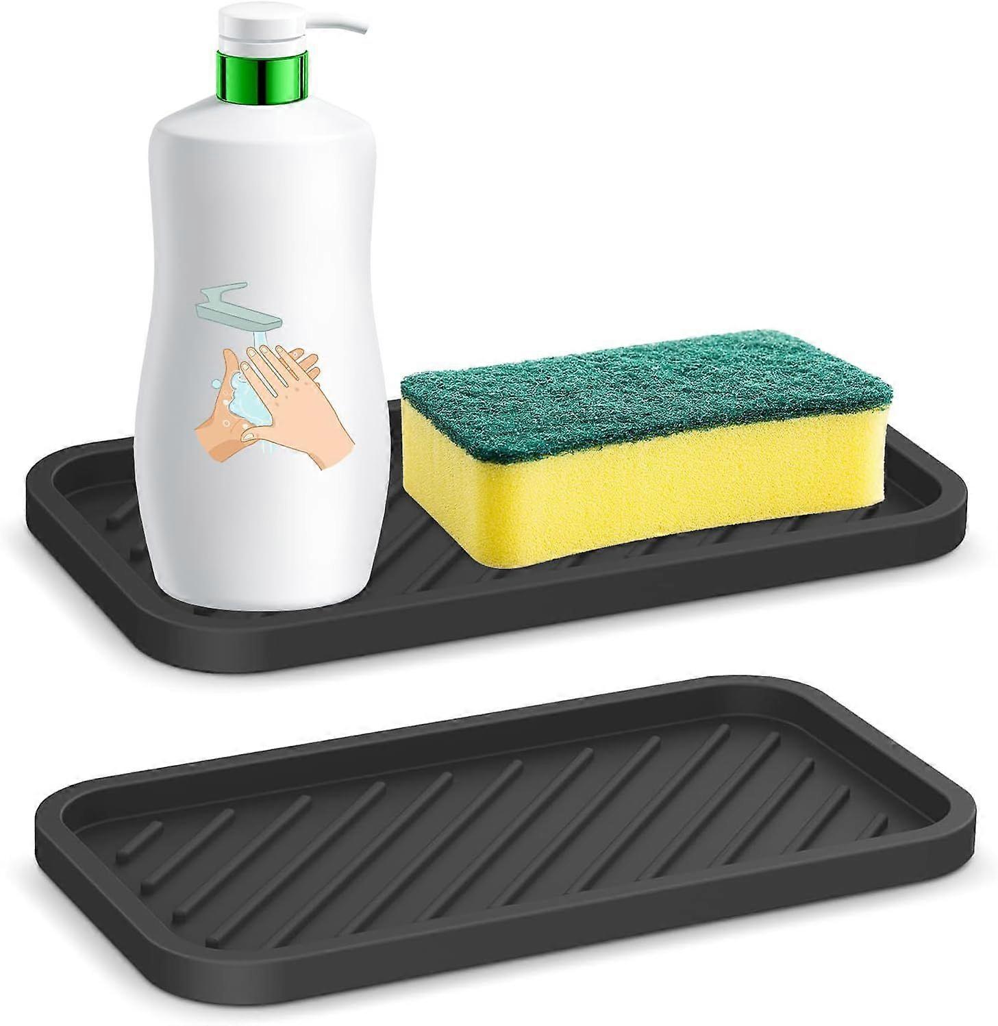 Set of 2 heat-resistant silicone trays Thick, non-slip dish drainers for kitchen countertops, drying mats and organizers with non-slip strips