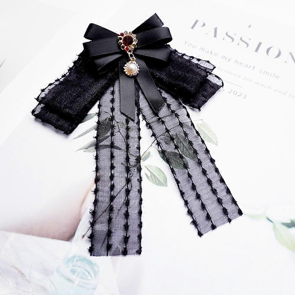 Black Memorial Black Ribbon Bowknot Brooch Polyester Vintage Crystal Rhinestones Jewelry Bowtie Neckline Decoration Pin