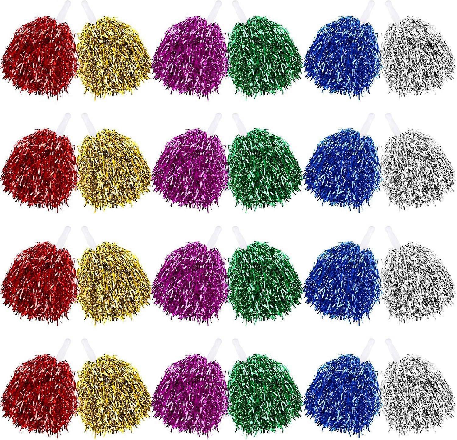 60 Pcs Cheerleading Pom Poms Bulk Cheer Pom Poms Sets Metallic Foil Fun Spirited