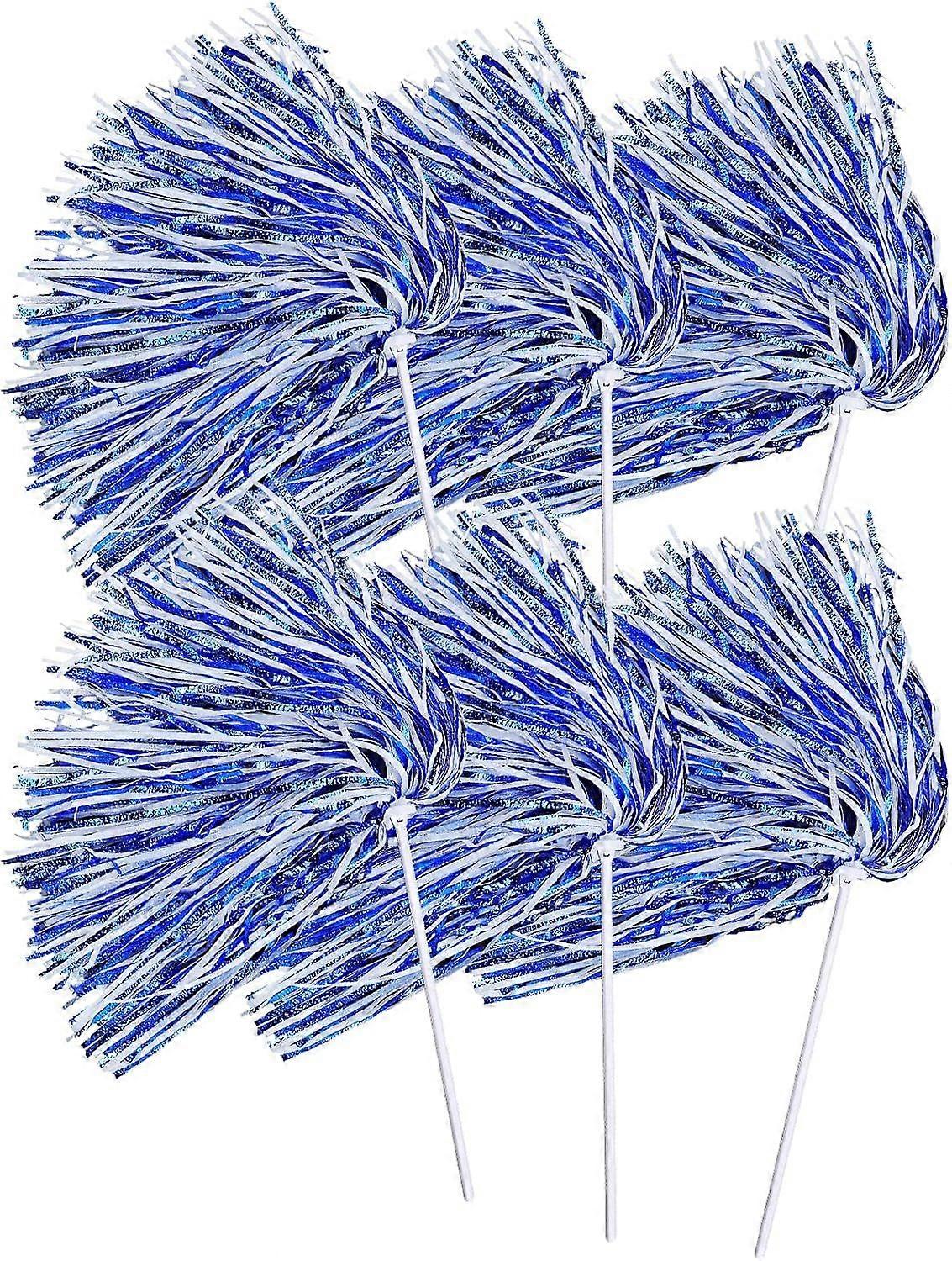 Classic Cheer Colors: Featuring timeless color combinations (blue/blue and white), these cheer pom-poms deliver a vibrant look, embodying school spirit, team pride, and the electrifying atmosphere of game day No-Shed & Durable: Made with solid plastic handles that resist breaking and tightly secured streamers that won’t shed. This sturdy construction keeps the pom poms mess-free, reusable, and built to last Lightweight & Comfortable Design: Each pom weighs only about 1oz, making them easy to carry for all ages. The 12-inch handle offers superior grip and control compared to traditional baton handles, while the metallic sheen of the tassels adds extra excitement on game day Versatile for Any Event: Whether it’s football games, basketball matches, pep rallies, homecoming events, or parties, these pom poms create a vibrant atmosphere and help boost team spirit at every celebration Great Value Package Options: Each set includes 6pcs or 12pcs cheer poms, offering flexible packs for any squad size. From small groups to large cheer teams, you can easily find the perfect pack to match your event or performance needs