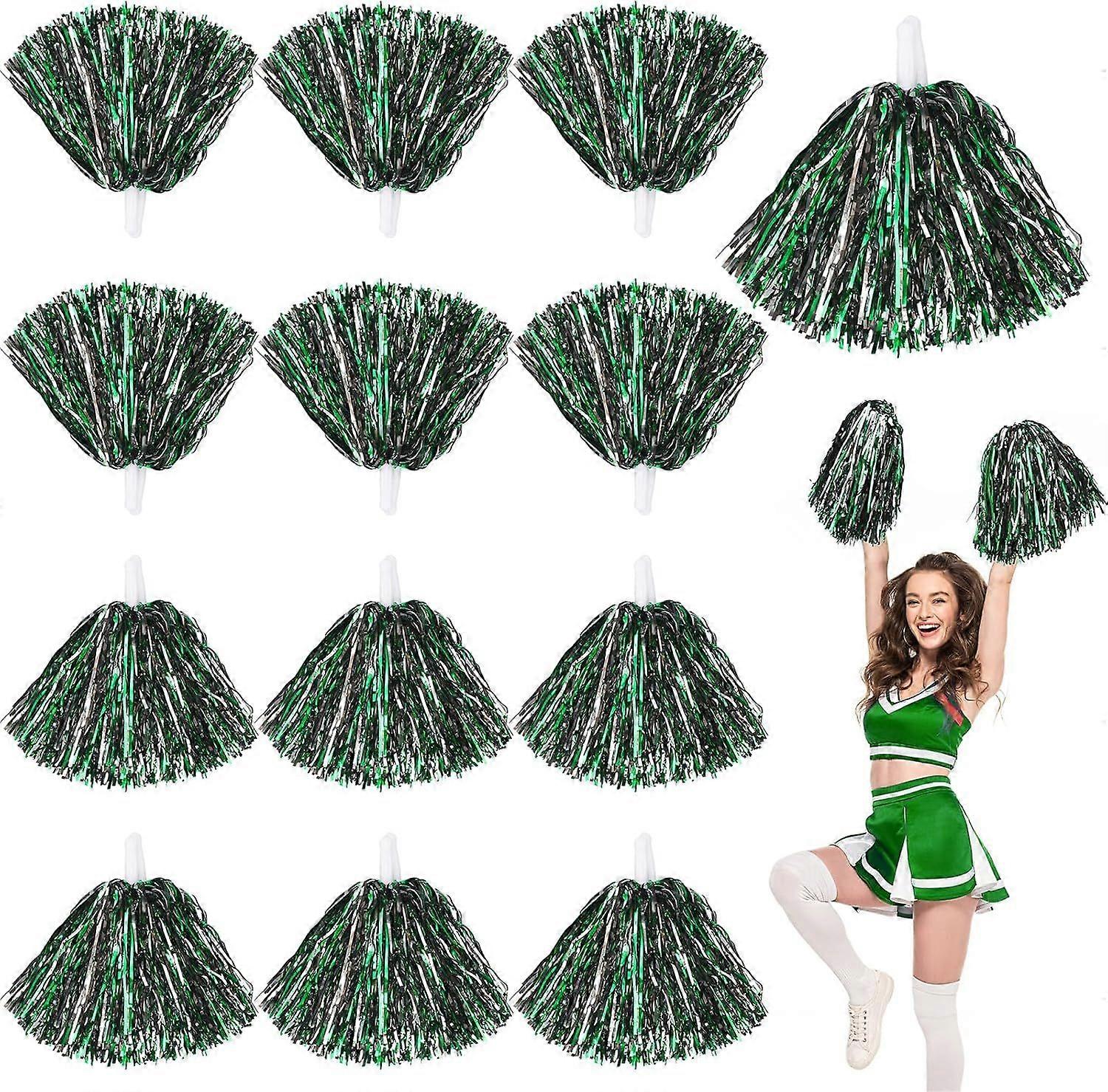 Riceshoot 12 Pcs Cheerleading Pom Poms Green Metallic Foil Plastic Pom Poms with