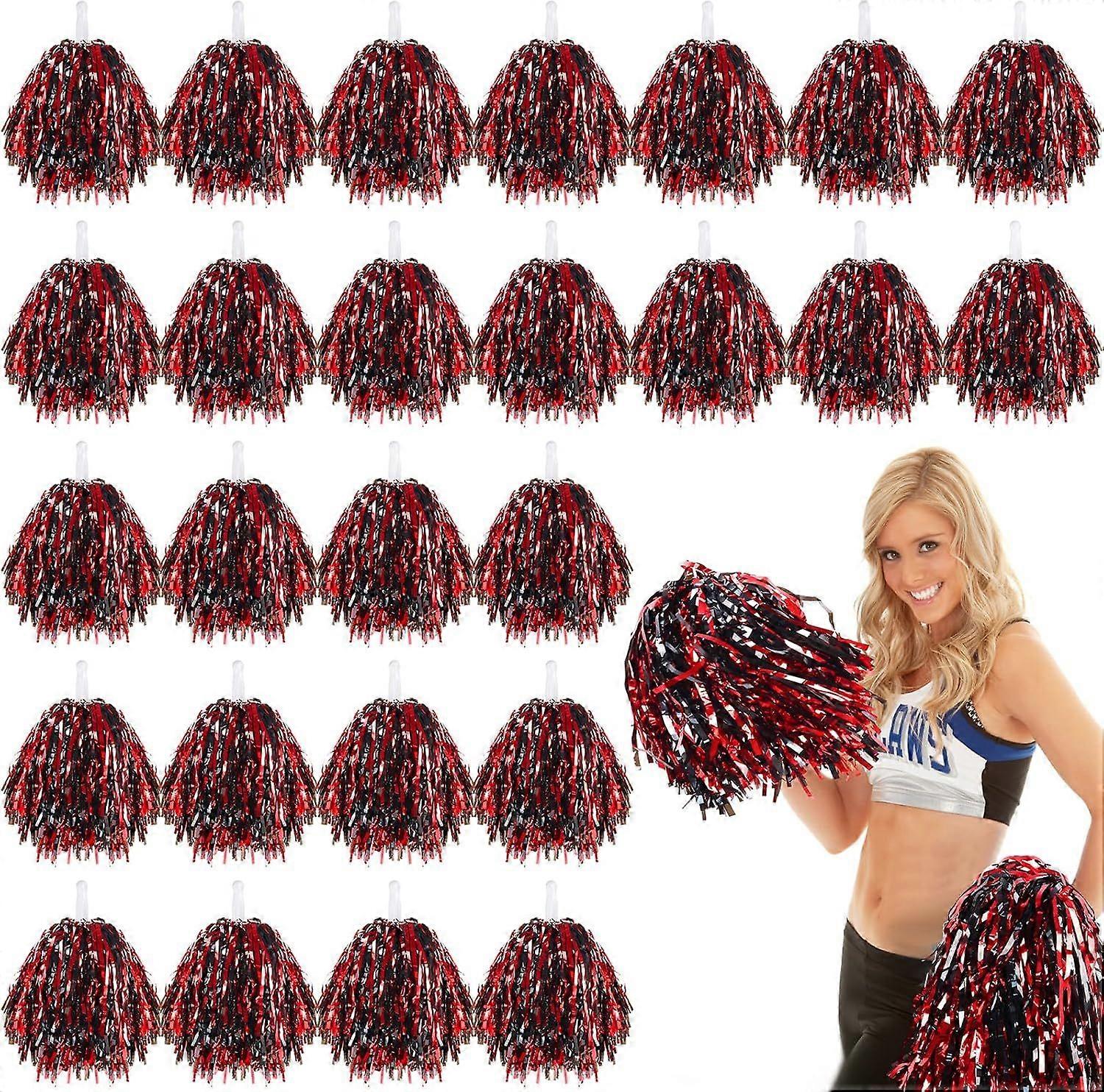 VAIPI 48 Pack Cheerleading Pom Poms Kit with Baton Handle Metallic Foil Squad