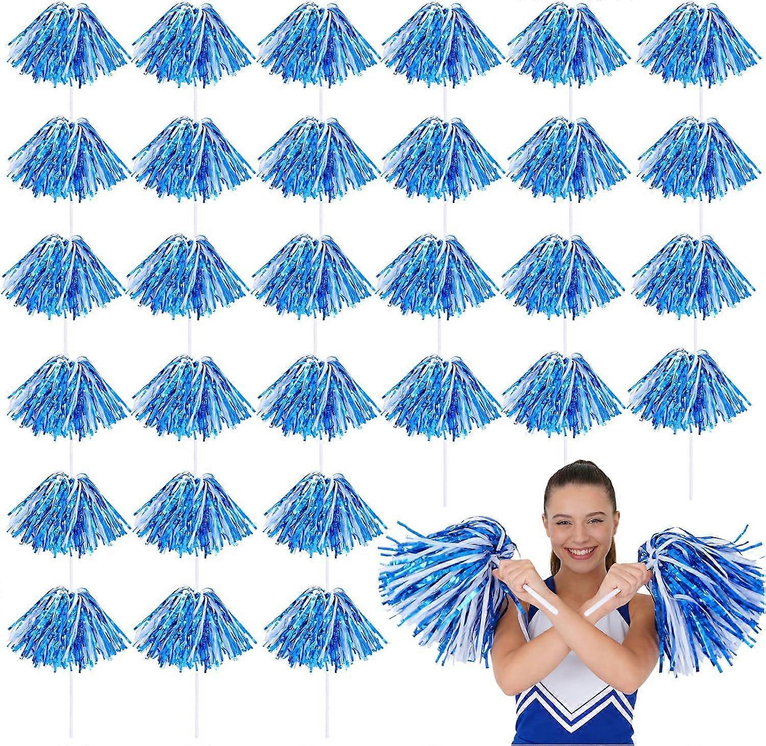 30 Packs Blue White Cheer Pom Poms with 11Inches Long Baton Handle,Cheerleading