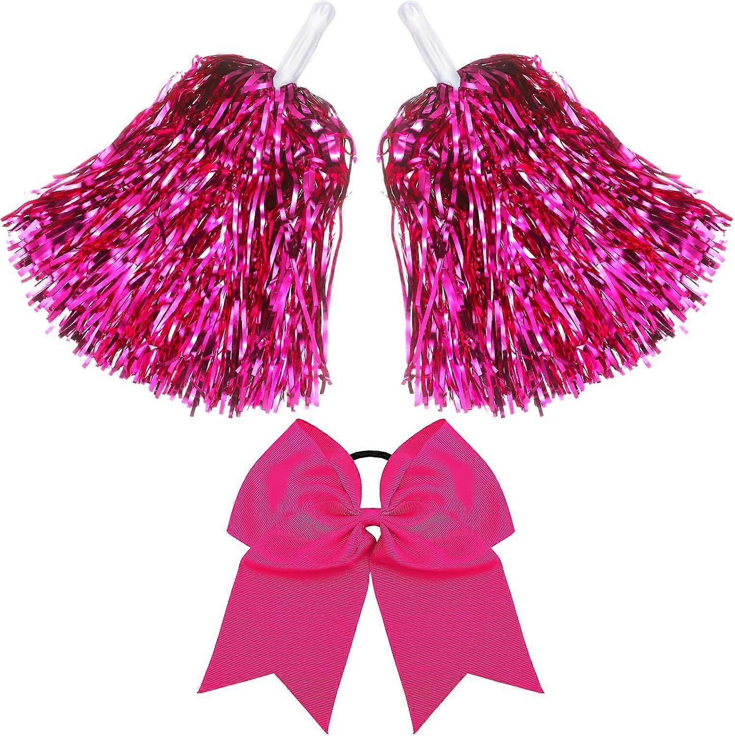 Hanaive 3 Pcs Cheerleading Pom Poms and Large Cheerleader Hair Bow Metallic Foil
