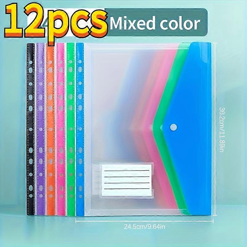 12-Pack A4 Expanding File Folders, 11-Ring Binder Pockets. Heavy-Duty PP Plastic Organizer with Lock for School, Office, Home.