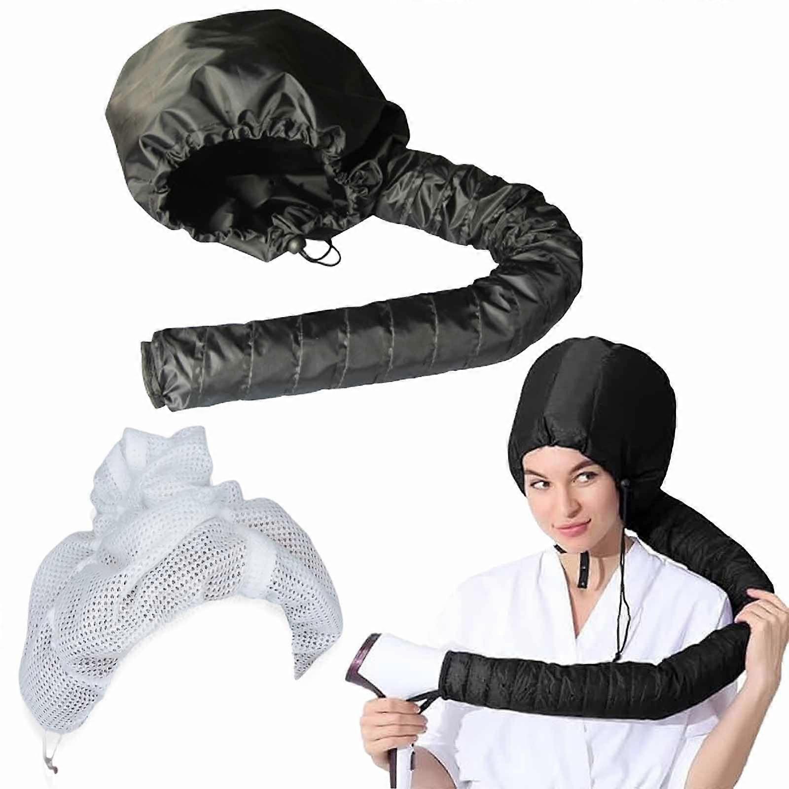 Hair Dryer Cap with Adjustable Hood for Curly Hair, Even Heat Distribution, 2 Pack Washable Design
