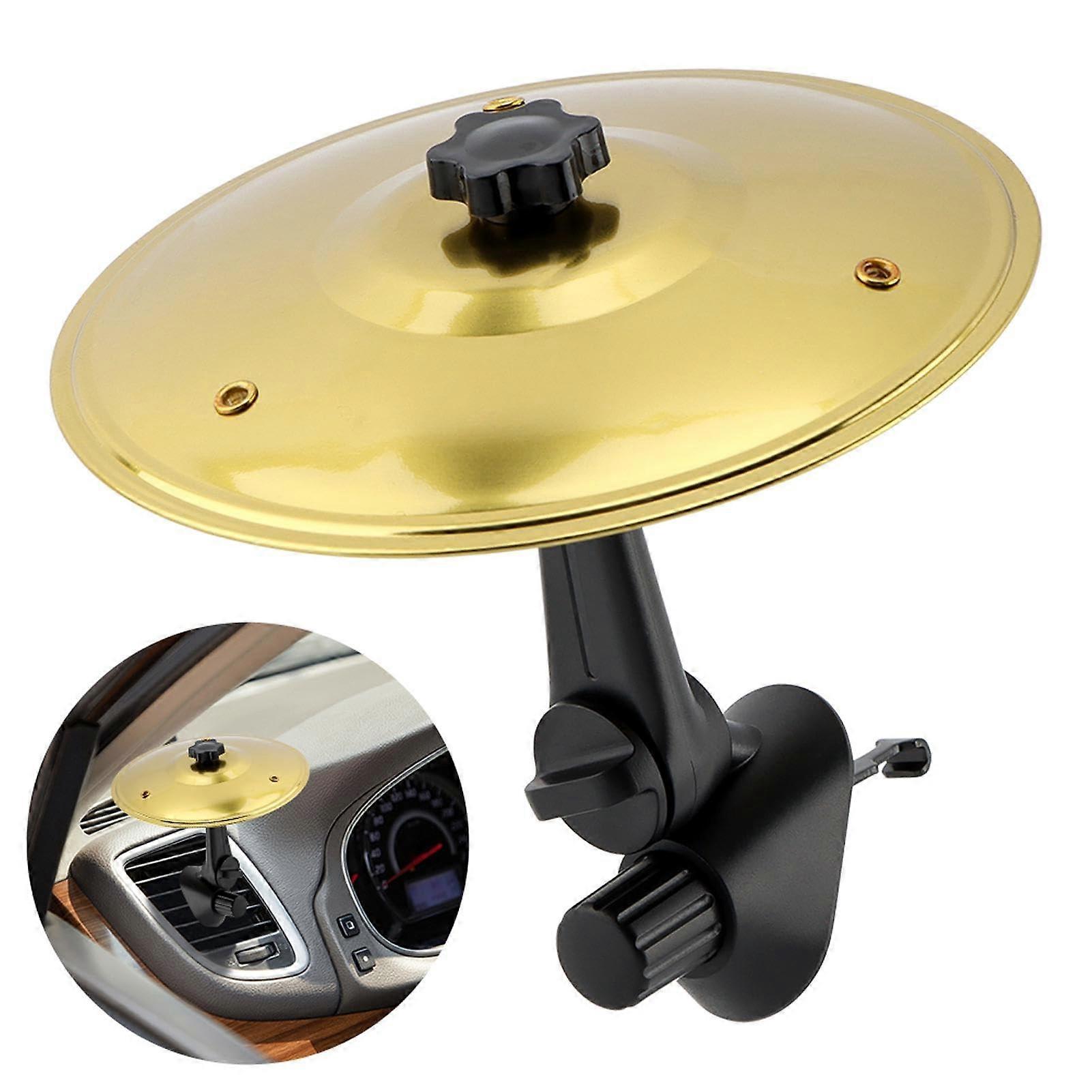 Color: Gold Turn idle moments into instant fun with this compact car cymbal. Designed to attach to most horizontal and vertical air vents or the dashboard, it adds an interactive rhythm element to your vehicle without blocking airflow. Key benefits Break boredom: Provides a simple way to entertain passengers and lift the mood during waits while the vehicle is stationary. Quick installation: Attaches securely to vents or the dashboard in seconds using the included doublesided tape and adjustable arm. Stable and adjustable: Lock the cymbal at the angle for tapping; the adjustable arm keeps it steady during use. Real metal resonance in a small package: Palmsized cymbal made from aluminum alloy with a plastic mount delivers a crisp, pleasing tone without taking up space. Safe use guidance: Intended for light tapping only and for use when the vehicle is stationary. Do not hit hard, which may dent or deform the cymbal. Always prioritize road safety. Features and specifications Color: Gold Materials: Plastic and aluminum alloy Compatibility: Fits most horizontal and vertical car air vents and dashboards Size: Palmsized, compact design that will not obstruct airflow Package includes: 1 piece car drum cymbal, 1 piece doublesided tape Practical use scenarios Parking lot or rest stop entertainment: Keep kids or passengers amused during breaks on road trips. Waiting periods: Light percussion for brief stops when the vehicle is safely parked. Practice and play: A portable way for drummers and music lovers to tap out rhythms while away from a full drum kit, used only when the vehicle is stationary. Installation tips Clean the mounting surface before applying the doublesided tape. Attach to a horizontal or vertical vent blade or to a flat area on the dashboard. Adjust and lock the arm to set the cymbal angle for comfortable tapping. Important reminder Use only when the vehicle is stationary. Focus on driving at all times when the vehicle is moving. The cymbal is designed for light tapping only; excessive force may cause dents or deformation. it as a fun accessory rather than a full instrument.