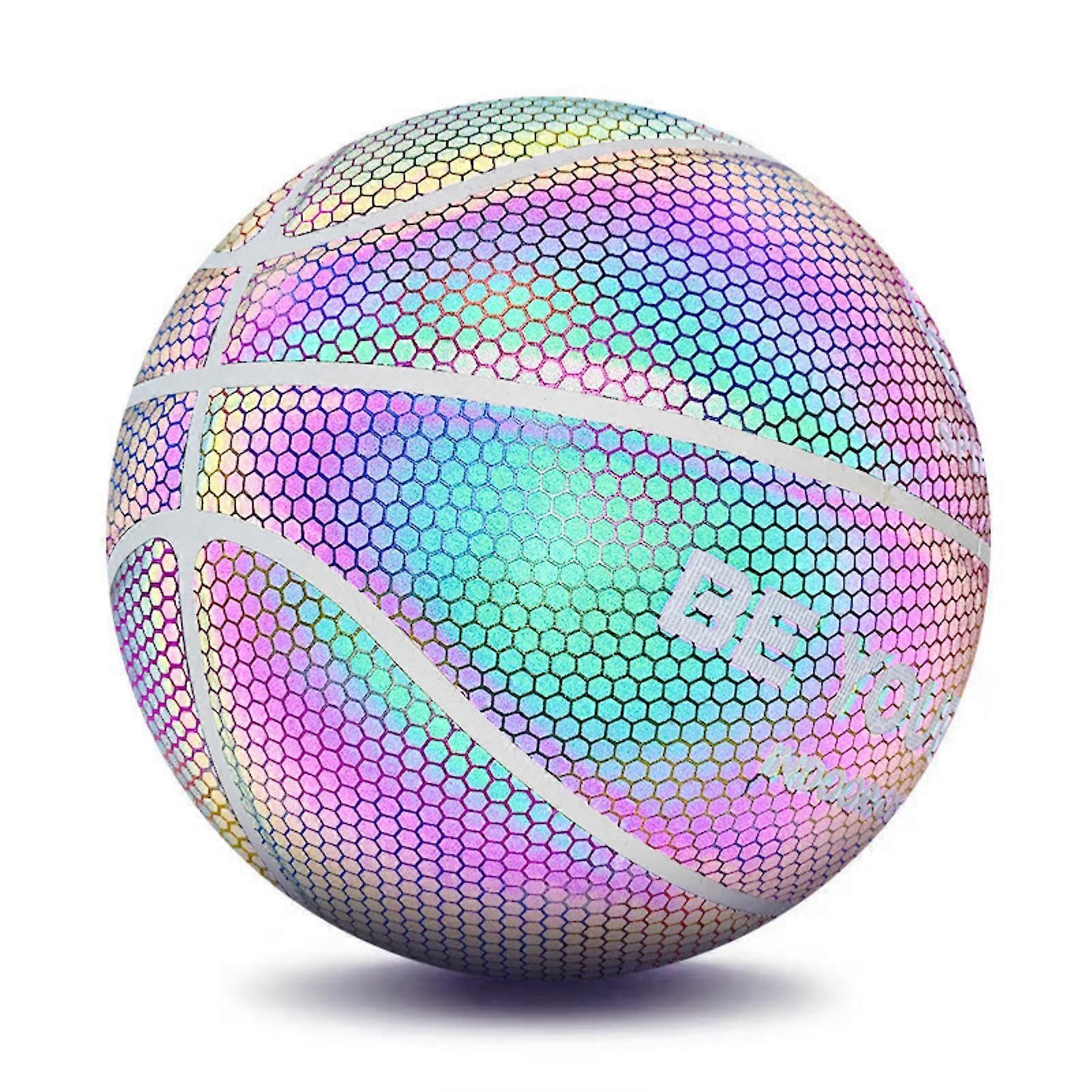 Holographic Reflective Basketball with Glow Effect, Durable PU Leather, Official Size for Indoor Outdoor Play