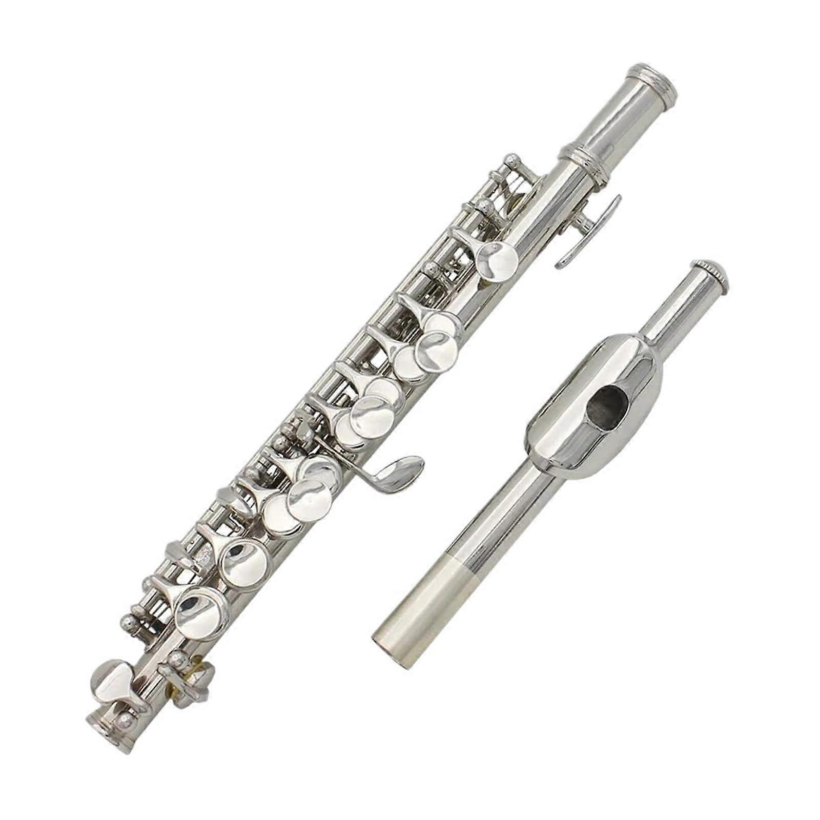 Silver Plated C Key Piccolo Flute with Leather Case Accessories for Beginners and Adults