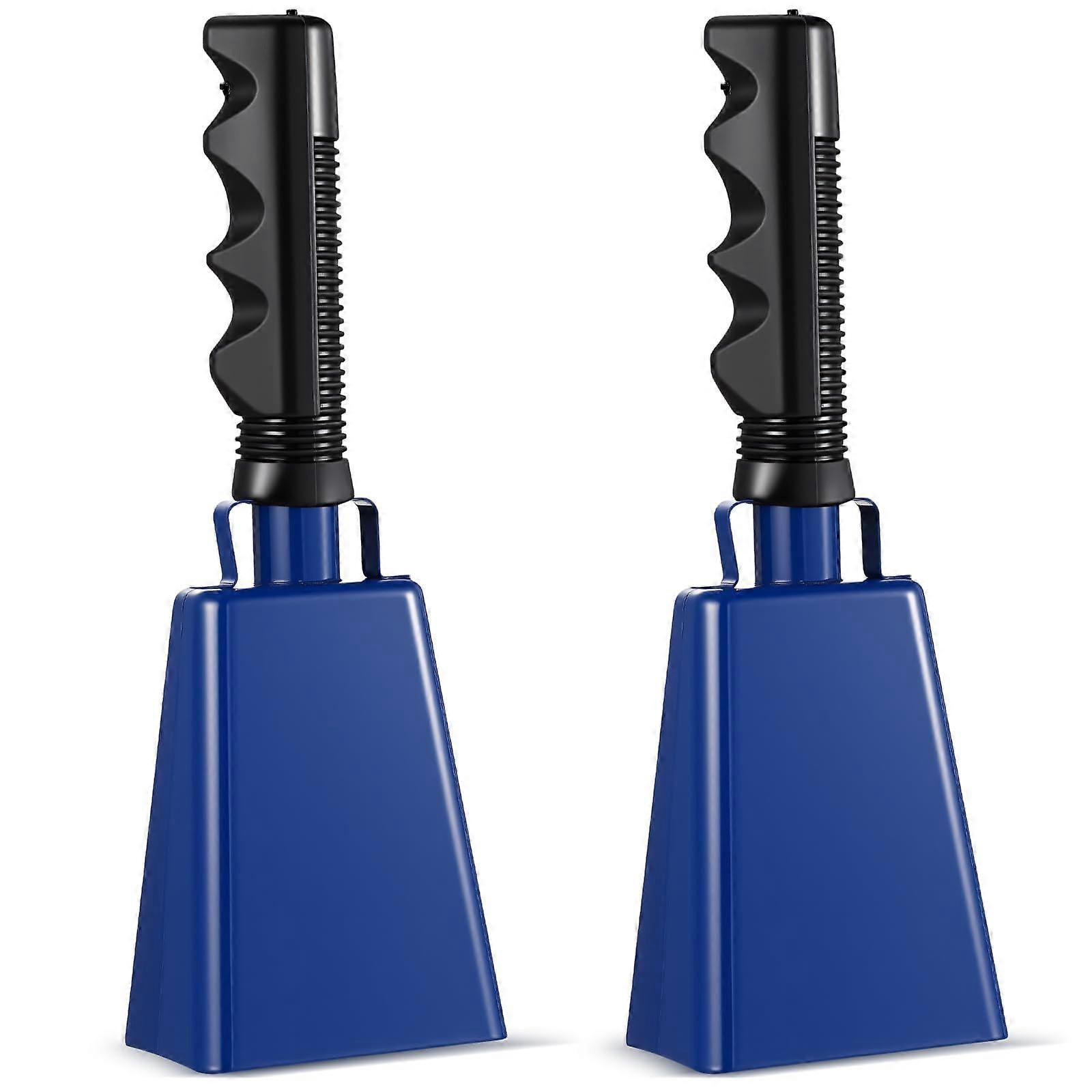 2 Pack 9 Inch Blue Cowbell with Handle Loud Metal Cheering Bell for Sports Games and Parties