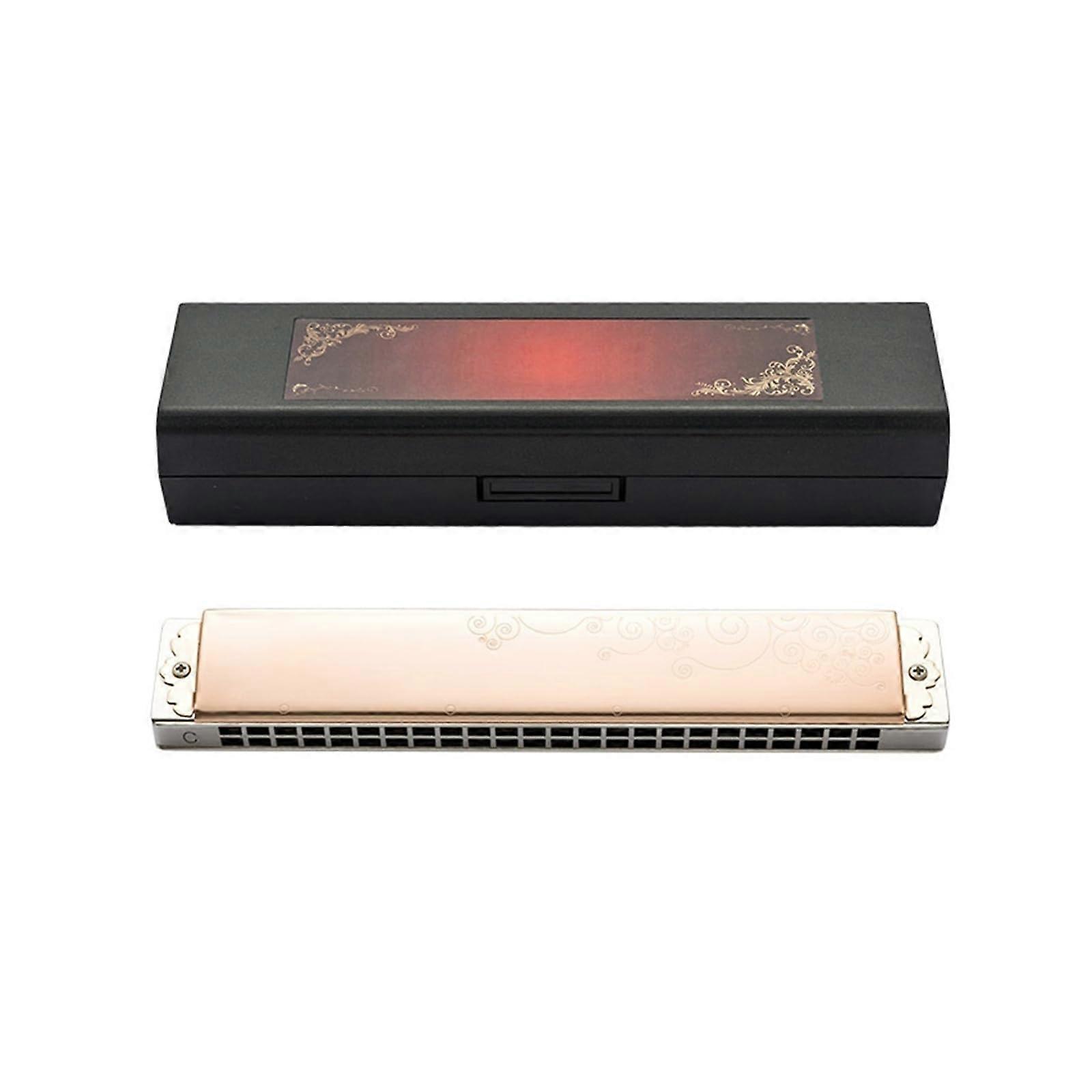 This 24hole harmonica in key C is designed for beginners and intermediate players as well as practicing musicians. Built with a stainless steel cover and metal sound holes, the instrument delivers a rich, responsive tone with reliable airtightness for clearer notes and fuller timbre. Each harmonica is precisely tuned and tested during manufacturing to ensure consistent performance and long term playability. The instrument ships in a protective case and is finished in a gold color. Key benefits and features Suitable for a wide range of styles: blues, folk, pop, classical, jazz, country, and rock. 24 holes for expanded range and musical flexibility in the key of C. Stainless steel cover and metal sound holes for durability and stable tone. Special sealing design and good airtightness for improved pitch control and easier access to higher notes. Precise tuning and individual testing guarantee consistent sound quality out of the box. Hand polished shell with a smooth finish for comfortable handling and an attractive appearance. Compact form factor and included case make the harmonica easy to store and transport. Recommended for beginners due to responsive playability and long term durability. Practical use scenarios Home practice and lessons: Reliable tuning and clear response support scale practice, breathing techniques, and learning different styles. Small live performances and jam sessions: The balanced tone and airtight construction make it suitable for onstage use with folk, blues, or country arrangements. Recording and studio work: Precise tuning, metal sound holes, and a consistent timbre help produce a clean, usable track for pop, jazz, or classical arrangements. Specifications Product category: harmonica Key: C Number of holes: 24 Cover material: stainless steel Sound hole material: metal Color: gold Packaging: case Applicable scenarios: musical instruments This harmonica offers dependable build quality, clear tone, and versatile playability for players developing their skills or expanding their repertoire.