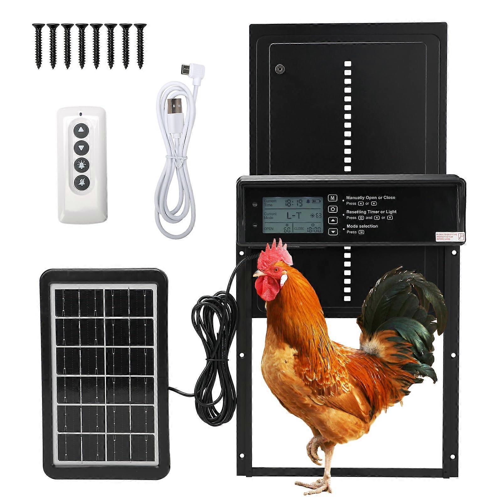 Solar Powered Automatic Chicken Coop Door with Timer, PredatorResistant Aluminum, AntiPinch Sensor