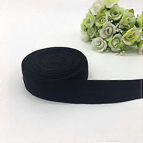 Black Fold Over Elastic Ribbon 1 Inch Spandex Satin for Sewing Crafts and Hair Accessories 5 Yards