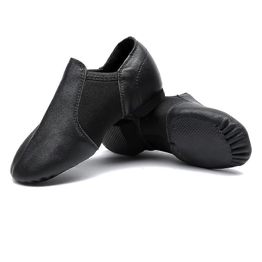 Black Leather Jazz Dance Shoes for Kids with Flexible Arch Support and Breathable Upper