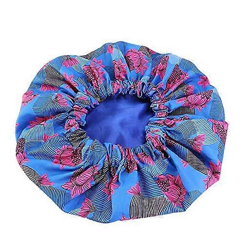 Satin Bonnet with African Floral Print, Double Layer Hair Sleeping Cap for Overnight Protection – Royal Blue