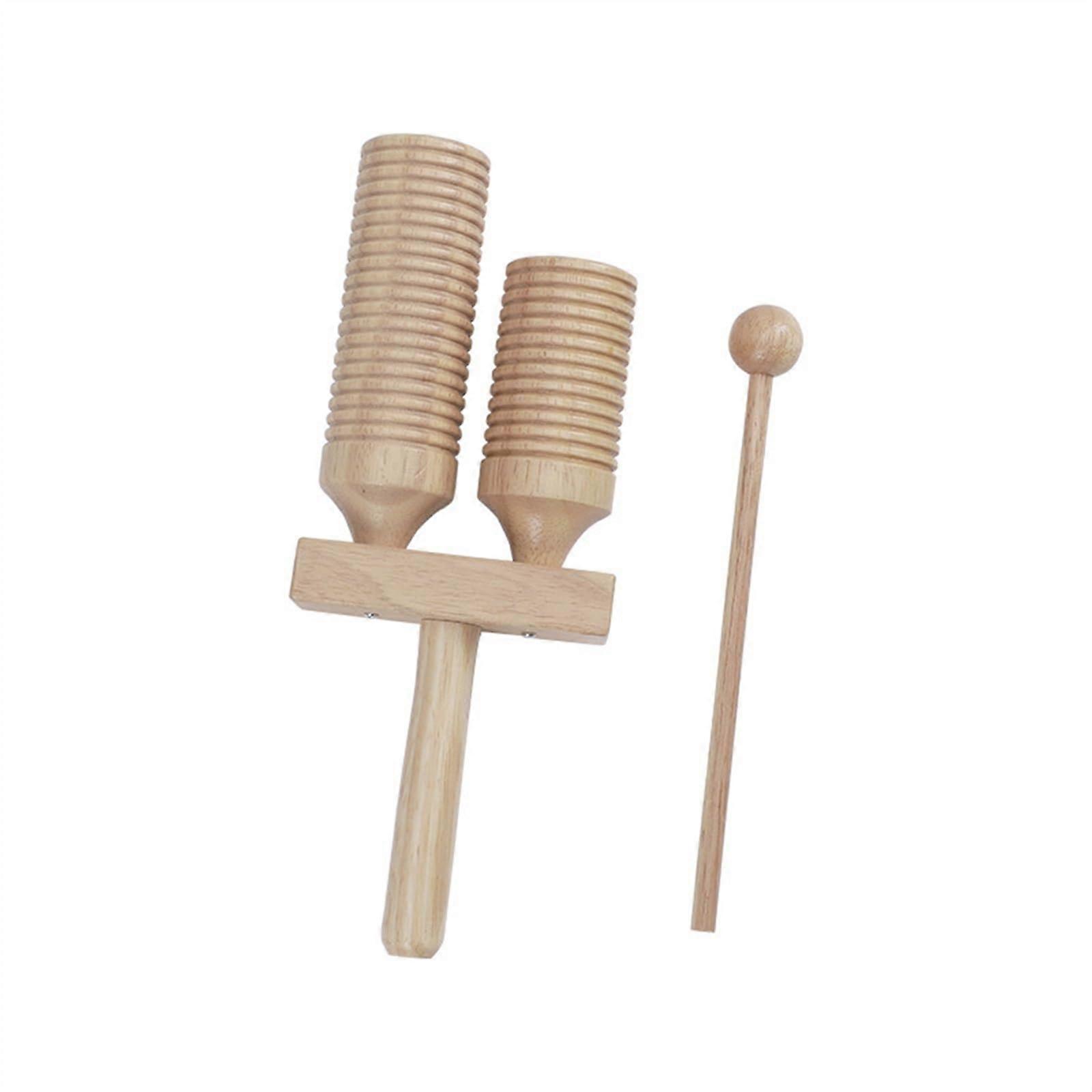 DoubleHeaded Wooden Guiro with Scraper, Dual Pitch Hardwood Percussion for Latin Music