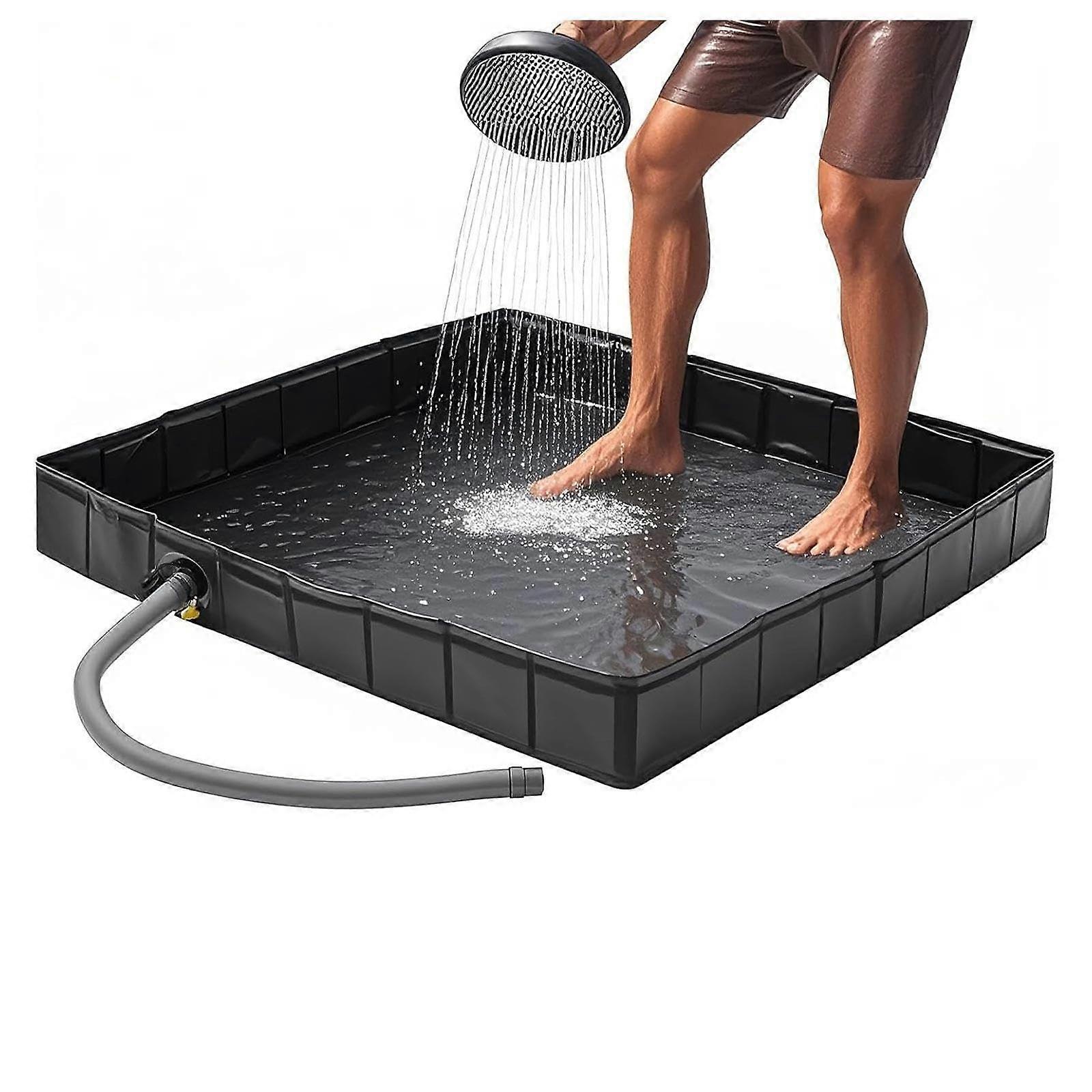 Portable Camping Shower Pan with Drain Hose, Waterproof PVC Outdoor Shower Mat for RV, Beach