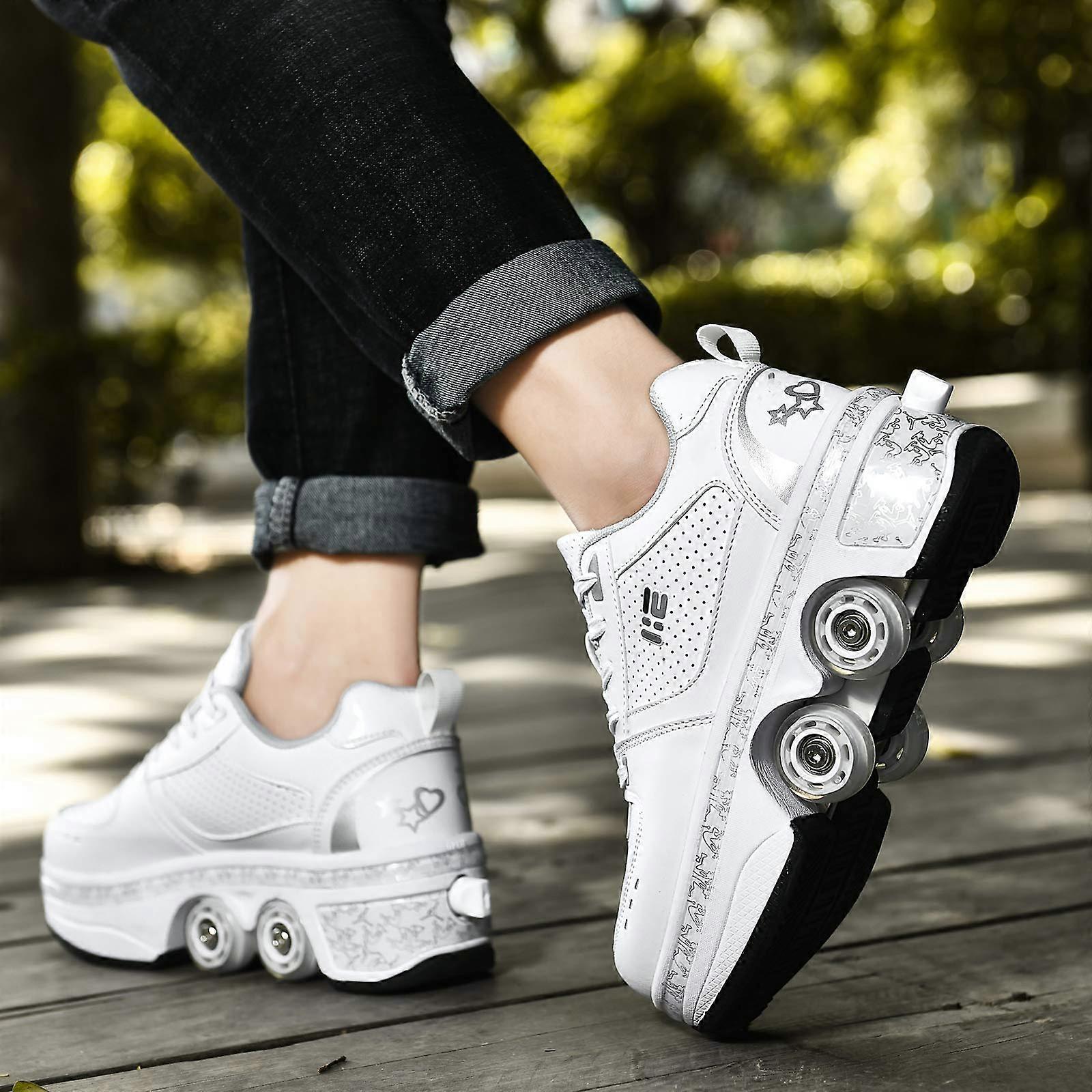 2in1 Adjustable Roller Skates Shoes with Colorful LED Lights Hidden Wheels for Kids and Adults White EUR34