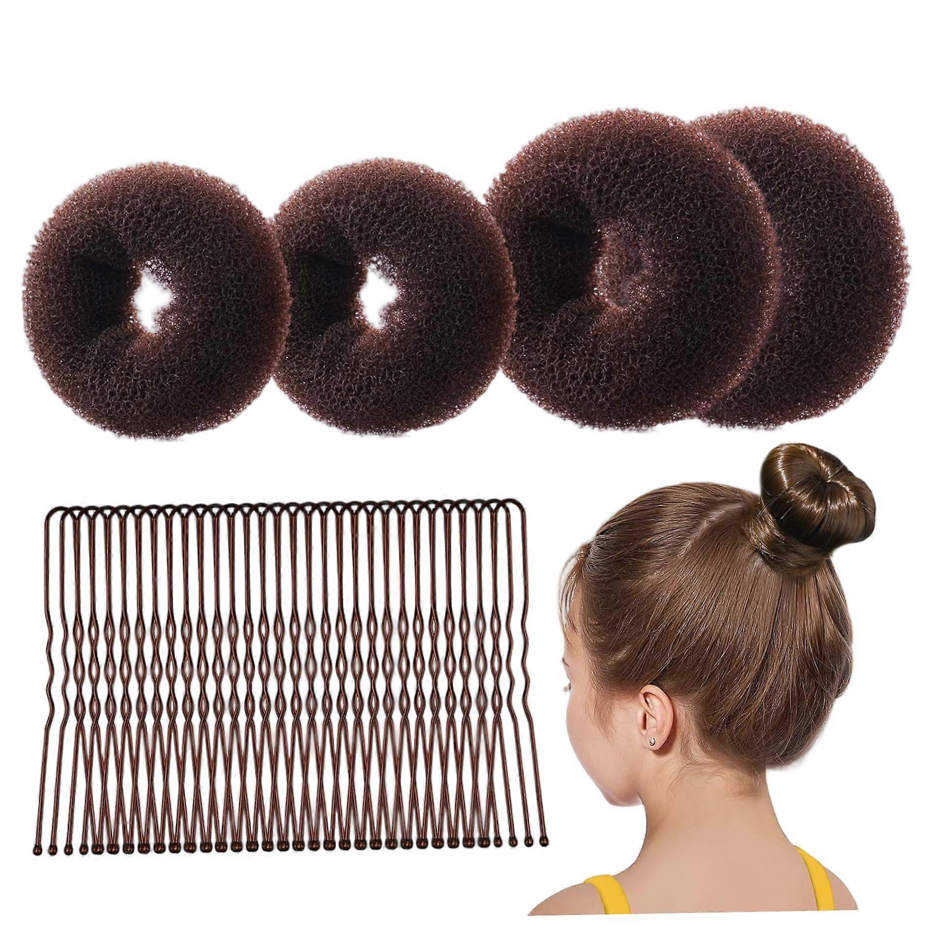 Hair Bun Maker Set, 34PCS Coffee Color Hair Donut with Bobby Pins, 4 Sizes for Kids and Adults