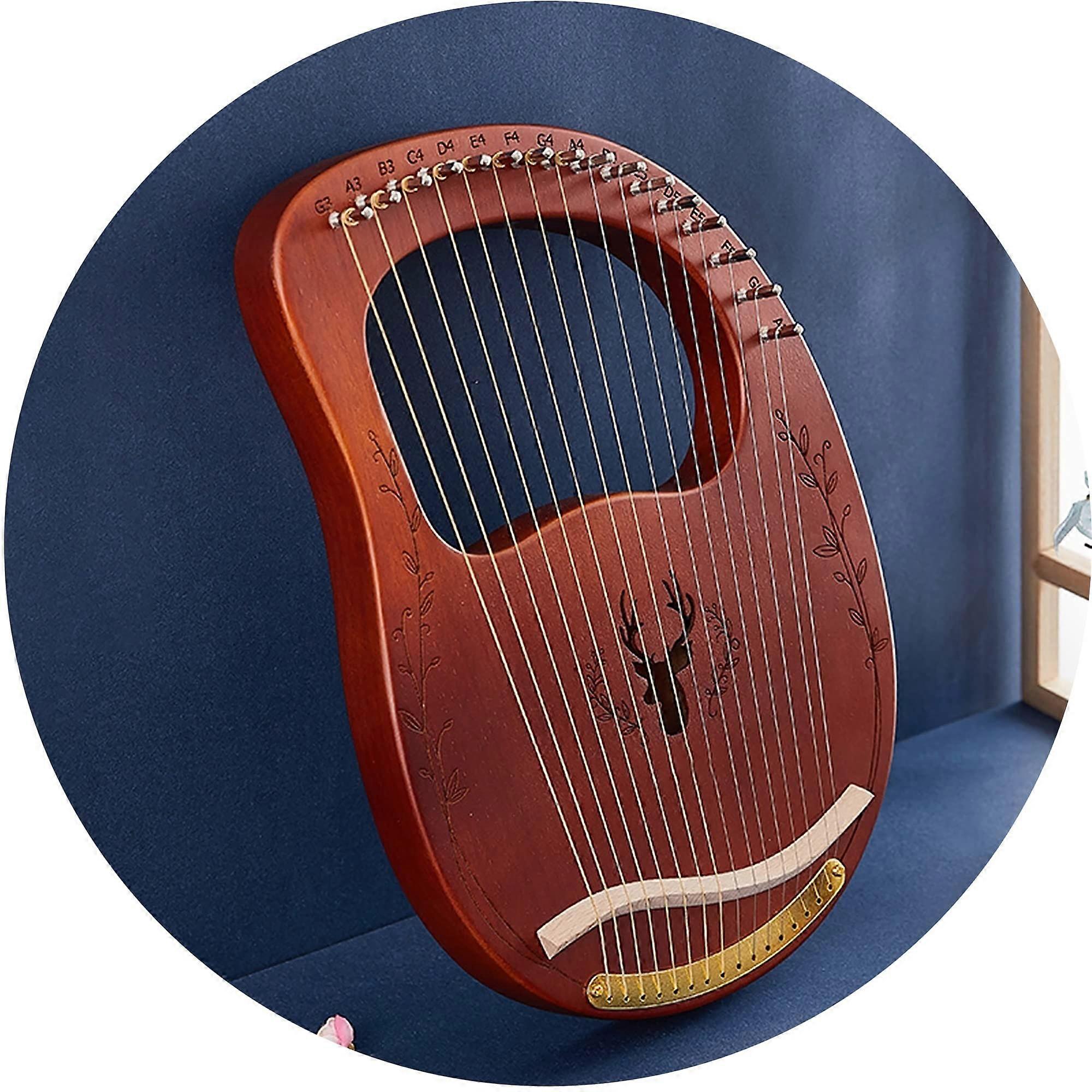 The lyre has roots in Renaissance art, where images of angels and classical myth inspired instrument makers to recreate the harp as a handheld, lyrical instrument. This 21string lyre harp brings that historical charm to a modern, playable form. Key benefits Ready to play and portable: Lightweight and easy to carry, ideal for practice, travel, classroom use, or small performances. Clear, sustained acoustic tone: Solid mahogany box construction delivers a warm, consistent sound with good sustain. Durabilityfocused design: Rounded grip, a fitted saddle and metal end rings protect the wood from string pressure and improve longterm performance. Easy to learn: Simple string layout and abundant online learning resources make this instrument suitable for beginners and experienced players alike. Product highlights Model: 21string lyre harp, string instrument Body material: Mahogany Colors available: Beige, Blue, Brass, Brown Size: 40 x 30 x 3.5 cm Weight: 2.5 kg Tone: Pure acoustic, clear and steady when strings are plucked What is included 1 lyre harp 1 tuning wrench 1 cleaning cloth 1 spare string 2 picks 1 carry bag Design notes The instrument is carved from a solid mahogany acoustic box for hardness and a comfortable grip. The sun pattern on the sound hole and the classical lyre shape reference traditional motifs from lyric poetry and the arts. Replacement string and picks are included to help maintain playability out of the box. Practical uses and scenarios Solo practice and songwriting: Compact size and predictable tuning make it useful for composing or developing fingerstyle technique. Classroom and beginner lessons: Simple layout and included tools make it suitable for group instruction or individual learning. Small performances and recording: Portable and acoustic, it works well in intimate performance settings or for adding a lyrical texture in recordings. Important notes Only the lyre harp is included; any other items shown in props are not part of the . Product size may vary by 1 to 3 cm. Please refer to the actual instrument. Slight color differences may occur due to lighting and photography conditions. This 21string lyre harp combines traditional design with practical features to suit hobbyists, students, performers, and collectors who want an attractive, playable acoustic instrument.