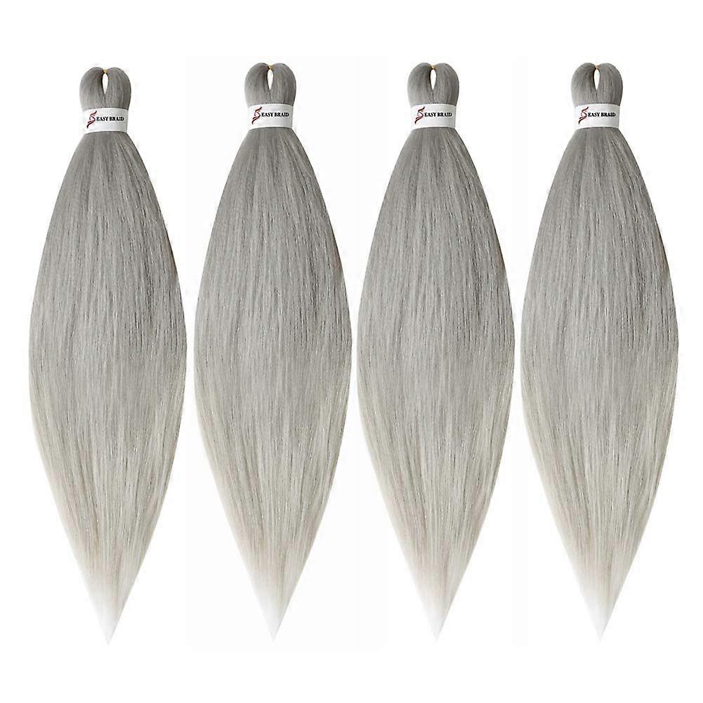 26 Inch Pre Stretched Braiding Hair Extensions Silver Grey Ombre Jumbo Synthetic Fiber 4 Packs