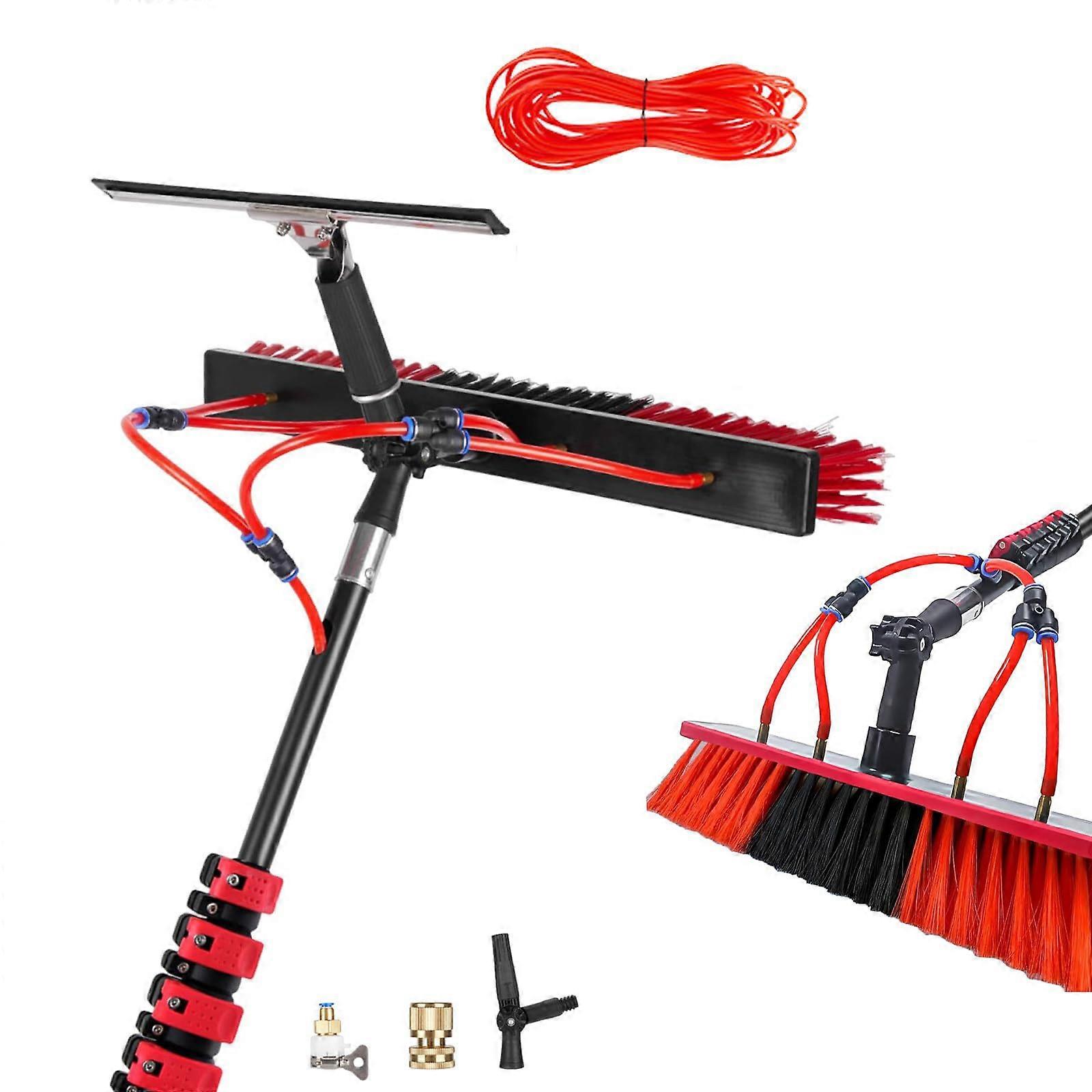 Window Cleaning Kit with Telescopic Pole, 180° Rotating Spray Head, 14/22in Brush, 20m Hose