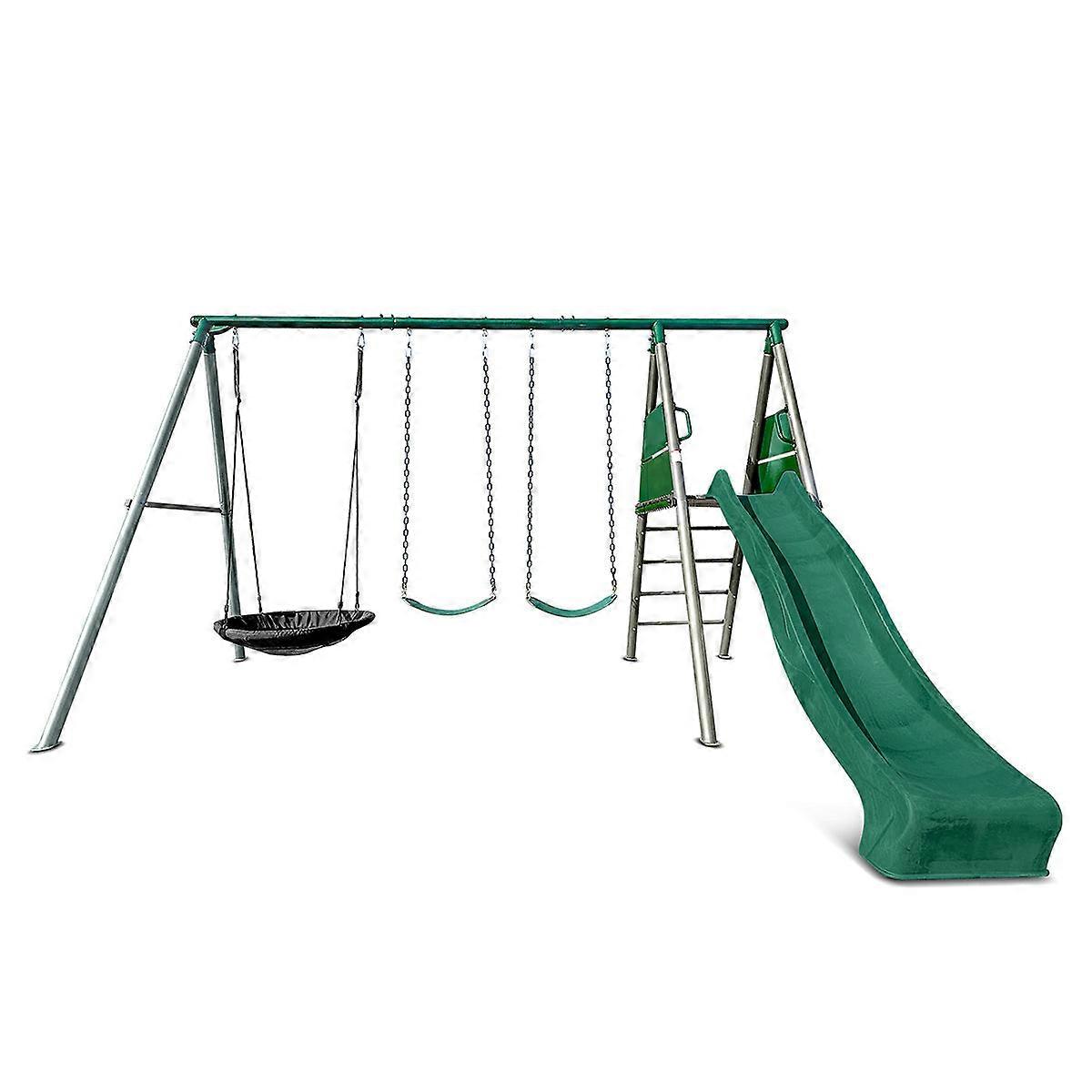 Premium Commercial-Grade Galvanized Steel Frame For Superior Strength And Weather Resistance. Exciting 2.2M Green Slide For A Smooth Fast Ride Down. Includes 2X Heavy-Duty Belt Swings Perfect For Swinging Fun. Comes With A Spacious 100Cm Nest Swing Ideal For Group Play Or Relaxing. Engineered For Safety With Smooth Edges Secure Fittings And A Stable Design. Easy Assembly With All Parts And Clear Instructions Included. Specifications: