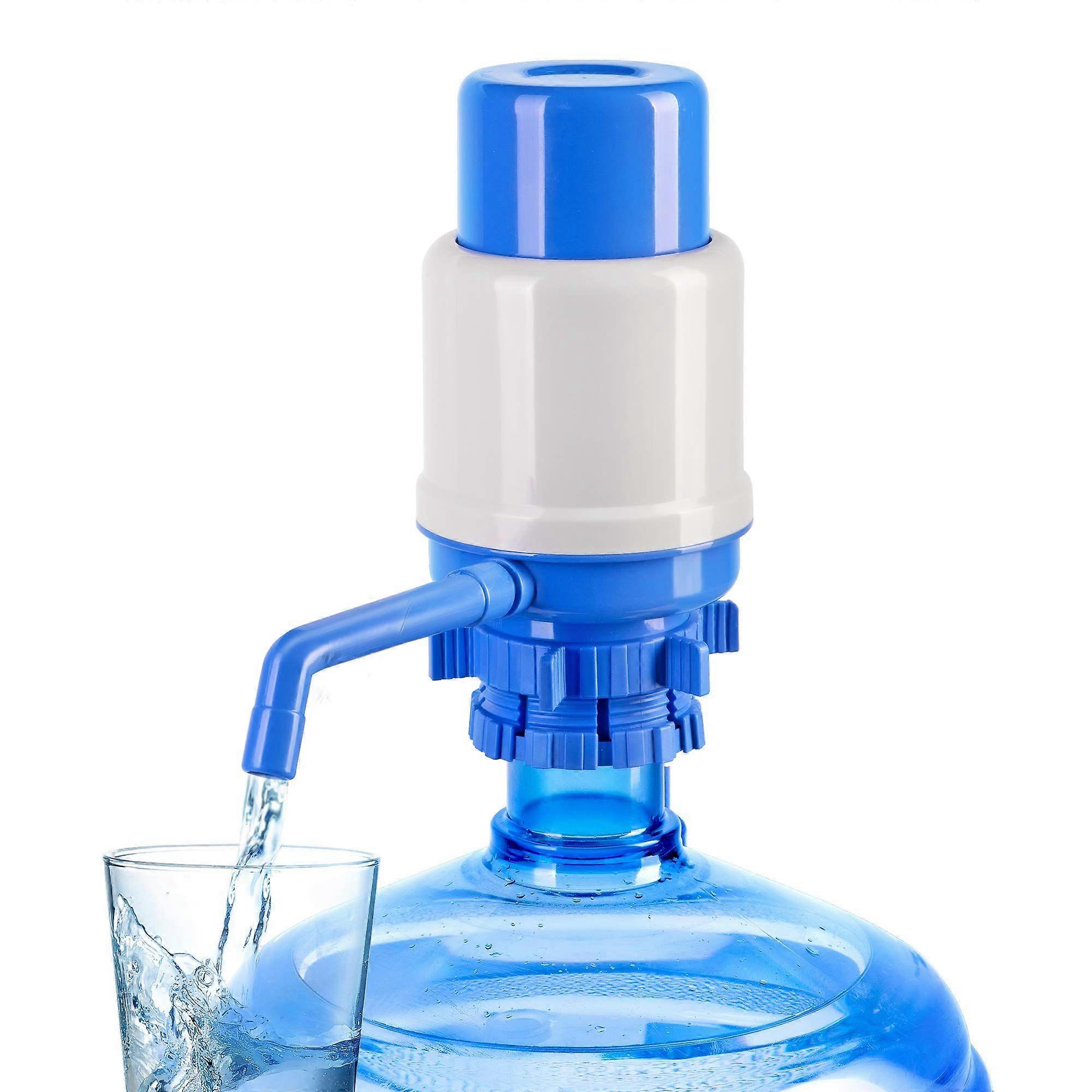 5-gallon water bottle manual pump suitable for crown-top and screw-cap water bottles features adjustable spout and protective spout cover.
