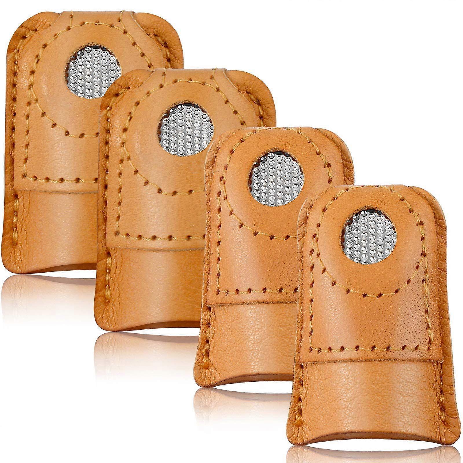 4 pieces of hand-stitched leather thimbles/finger protectors for sewing, quilting, and needlework; available in 2 sizes. (Craft accessories)