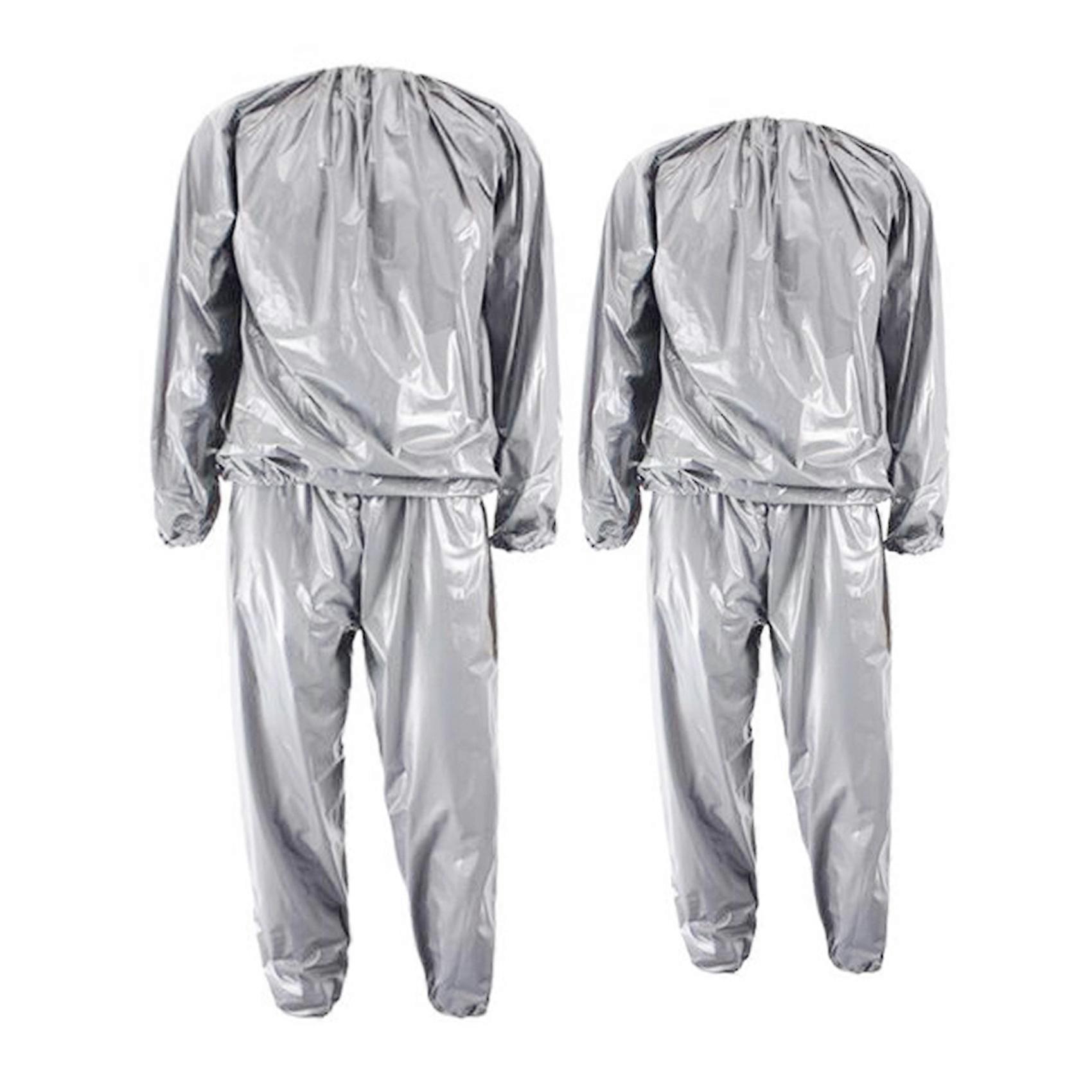 2x Heavy Duty Fitness Weight Loss Sweat Sauna Suit Exercise Gym Anti-Rip Silver XXL & 4XL