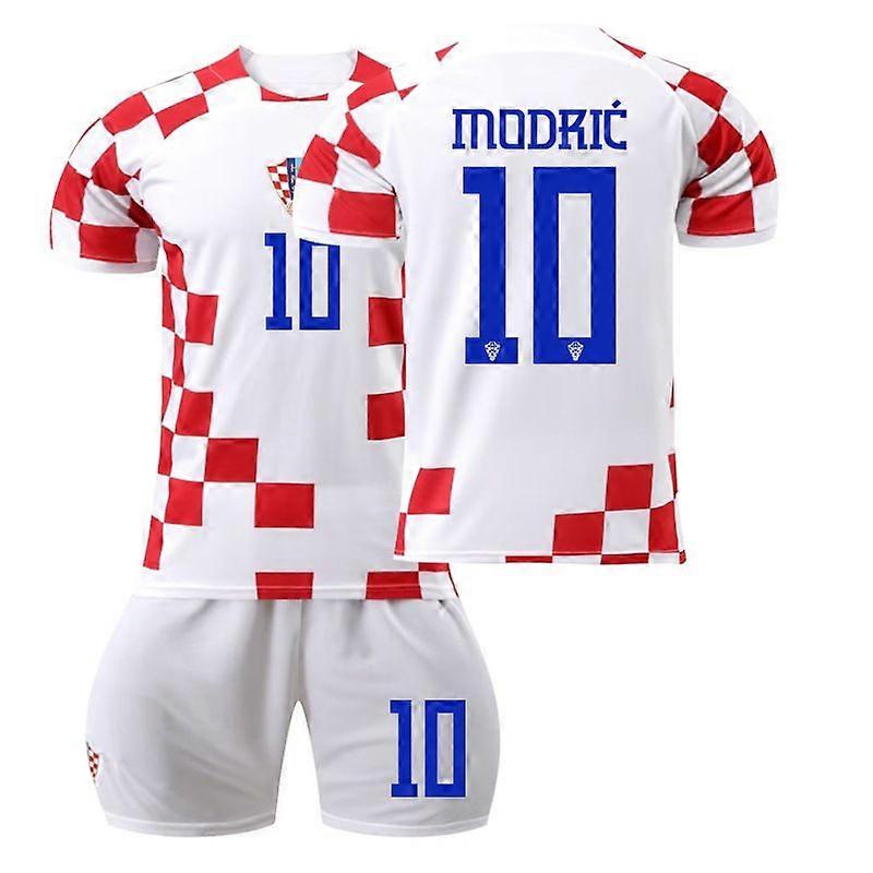 White Soccer Jersey with Red Checkered Pattern, No.10 Modric, Available in Kids' and Youth Sizes