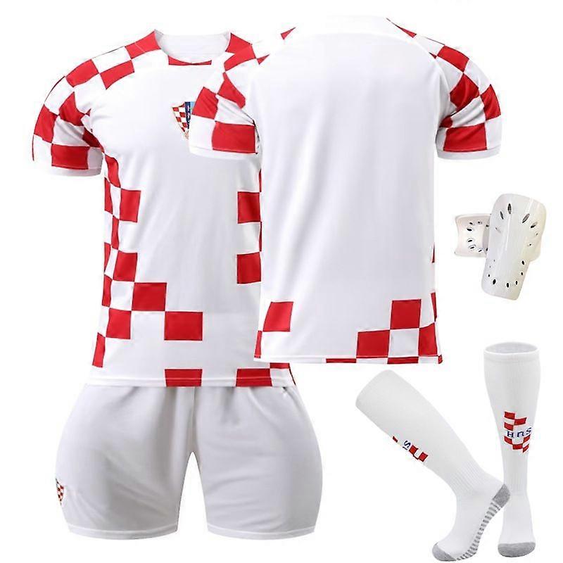 White Soccer Jersey with Red Checkered Pattern, No Numbur, Available in Kids' and Youth Sizes, Includes Soccer Socks and Shin Guards