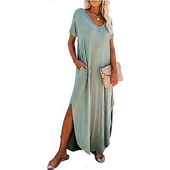 Trendy Split Hems Dress With Feminine Neckline And Secure Pockets Fashion Vacation Dress Great For Various Occasion Y XL