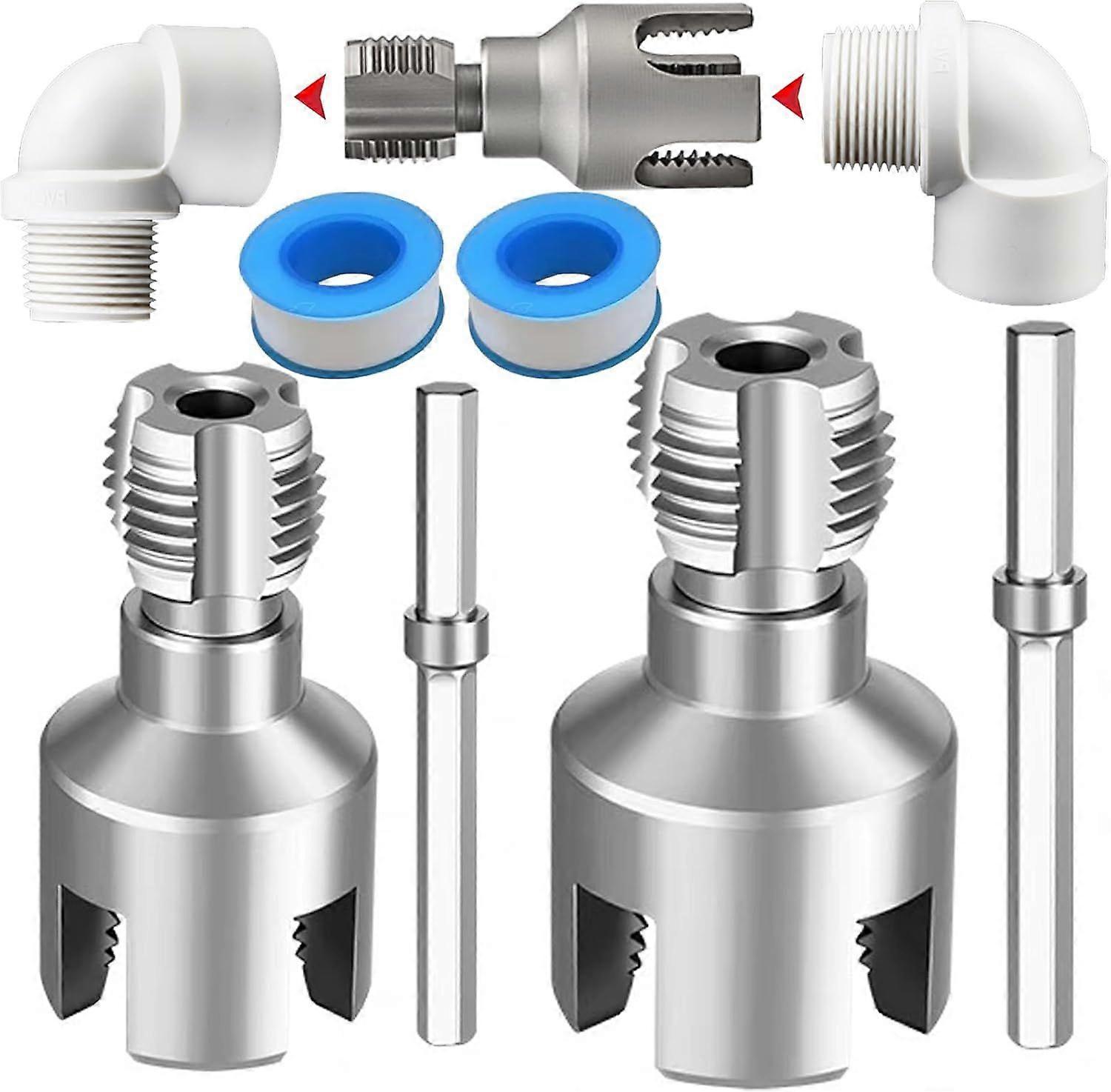 Integrated internal and external pipe threading tool with 1/2" and 3/4" dies, 2-in-1 compatible electric drill PVC pipe threading kit